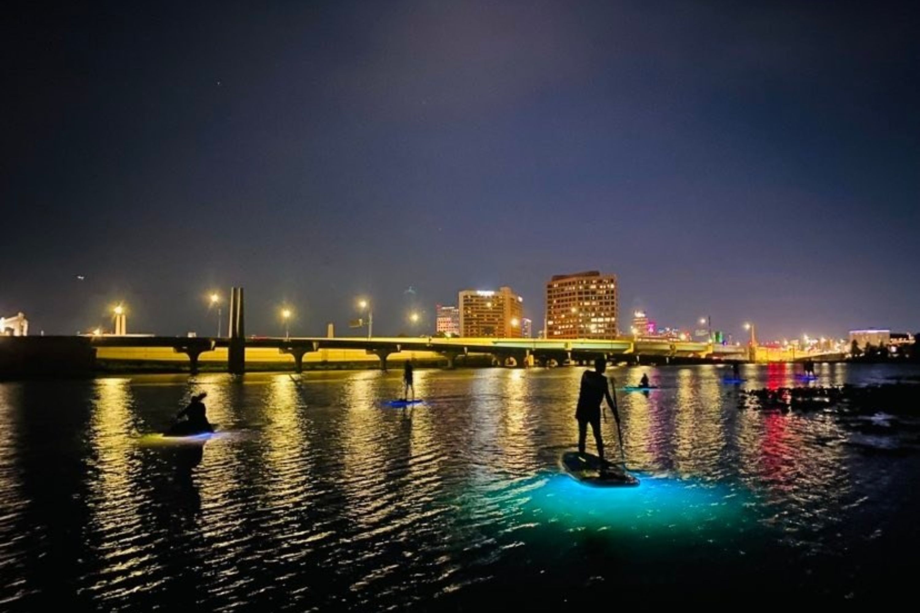 透过夜光桨体验体验艾芬豪湖的魔法!滑过水晶般清澈的海水,充满活力的彩色 LED 灯将水下世界变成了令人惊叹的水族馆。当您划桨时,奥兰多迷人的城市灯光为这次冒险创造了风景如画的背景。