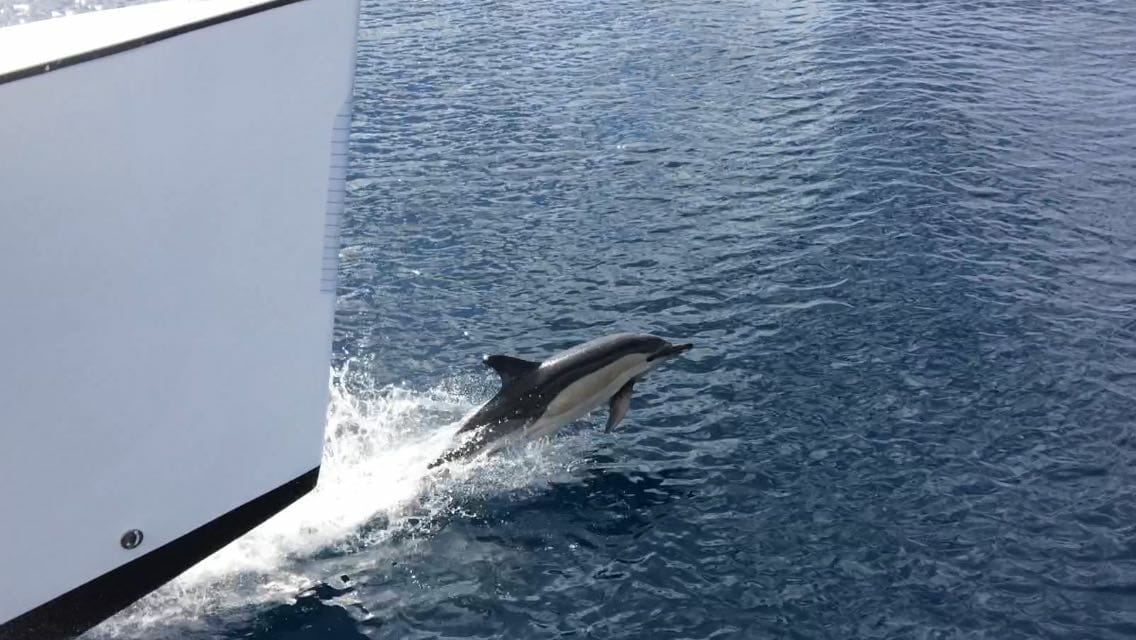 体验海豚在兰萨罗特岛清澈的海水中与您的双体船一起畅游的刺激!