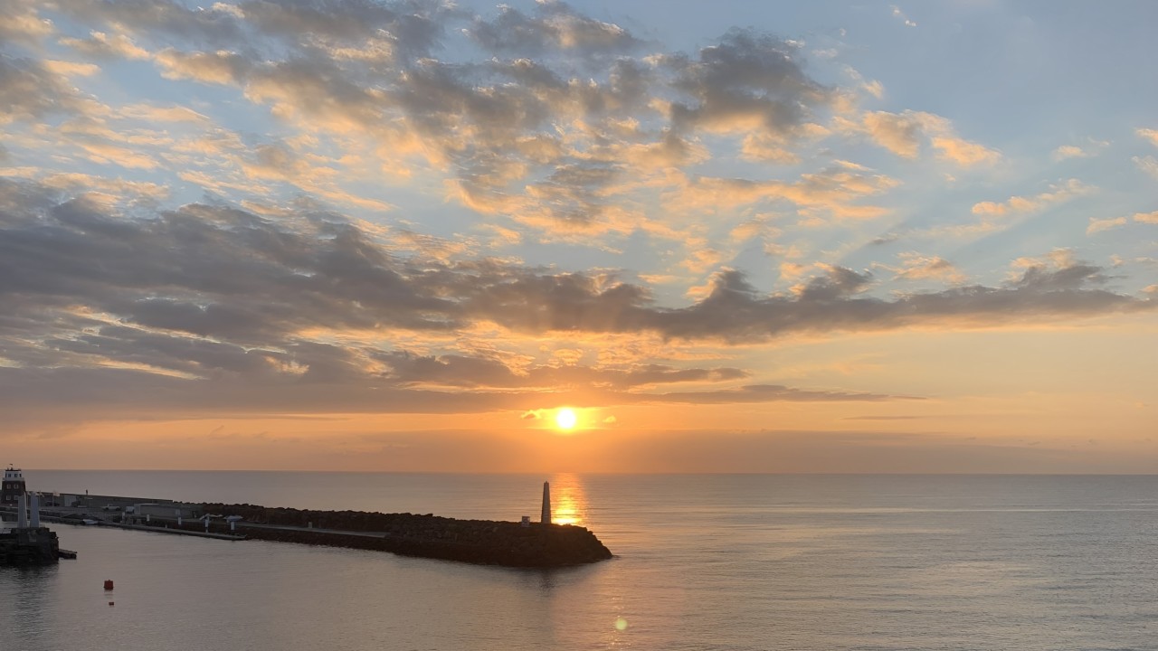 观看太阳融入地平线,将兰萨罗特岛的天空染成金色