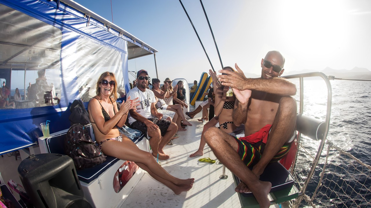 在令人惊叹的兰萨罗特岛双体船巡游中与朋友一起放松、享受日光浴并享受美好氛围!