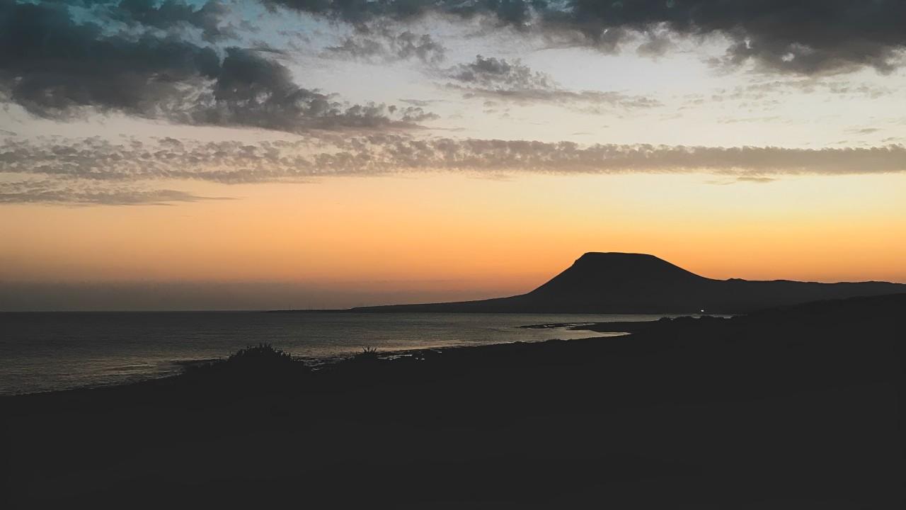 当天空渐渐融入暮光之城的怀抱时,感受兰萨罗特岛宁静的轮廓