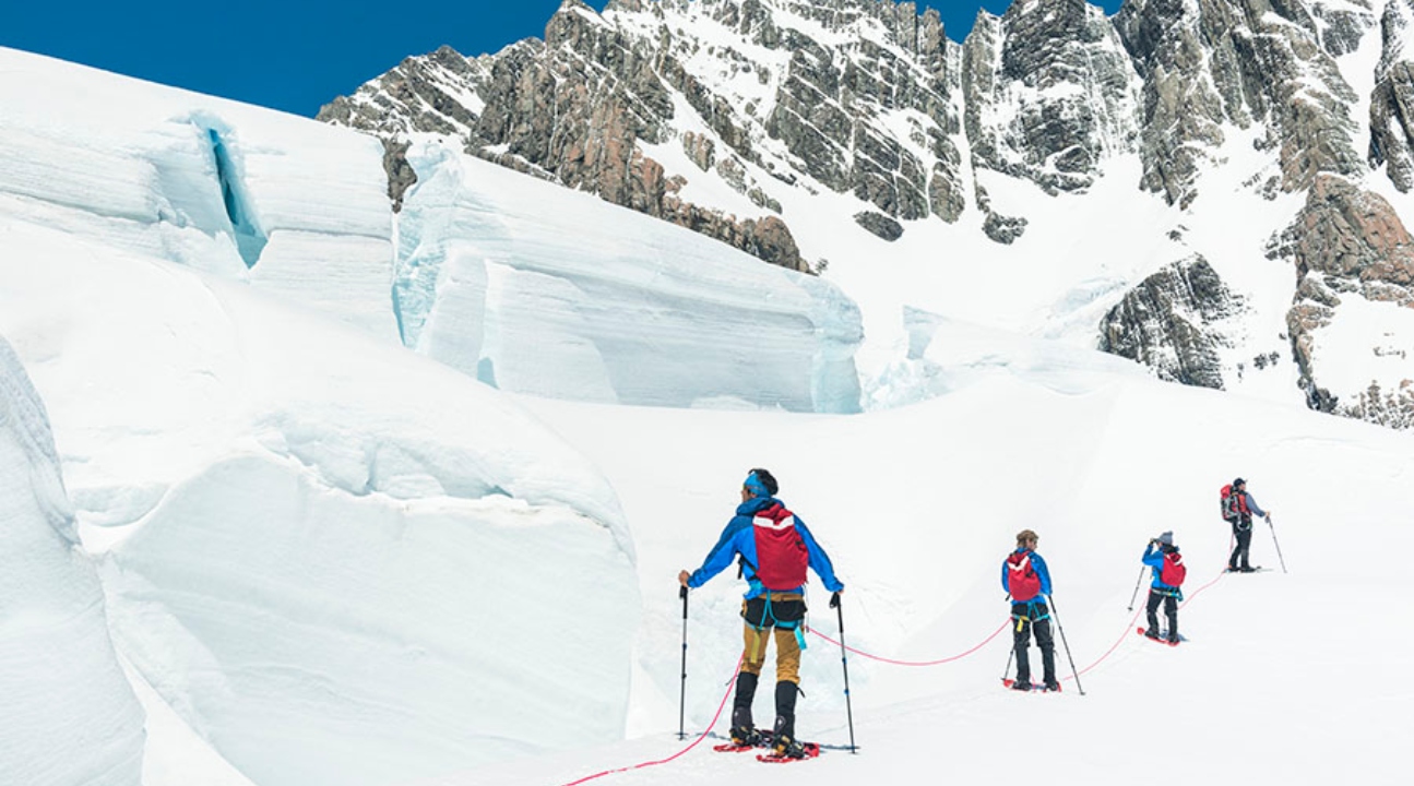 如果您从未在新西兰尝试过雪鞋健行,现在是时候试一试了!穿雪鞋行走是一种自信地穿越白雪覆盖地形的好方法。进入冰川后,我们将为您提供雪鞋、可调节手杖、安全带和您可能需要的任何其他设备。安装好装备后,您就可以在这个不断变化的环境中探索冰层;您位于新西兰登山运动的中心和发源地。