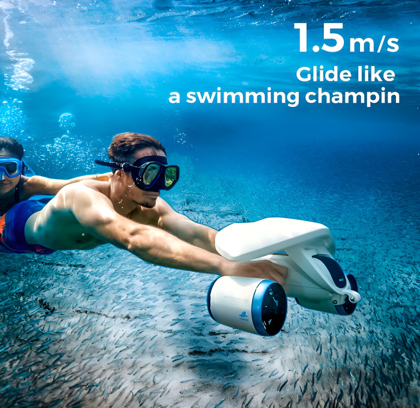 * **充满电后可使用长达 1 小时:**现在是您探索的时候了!依照自己的步调在清澈的海水中滑行,享受独特的浮潜体验。我们为您提供充满电的电池,可持续使用 30 分钟至 1 小时。