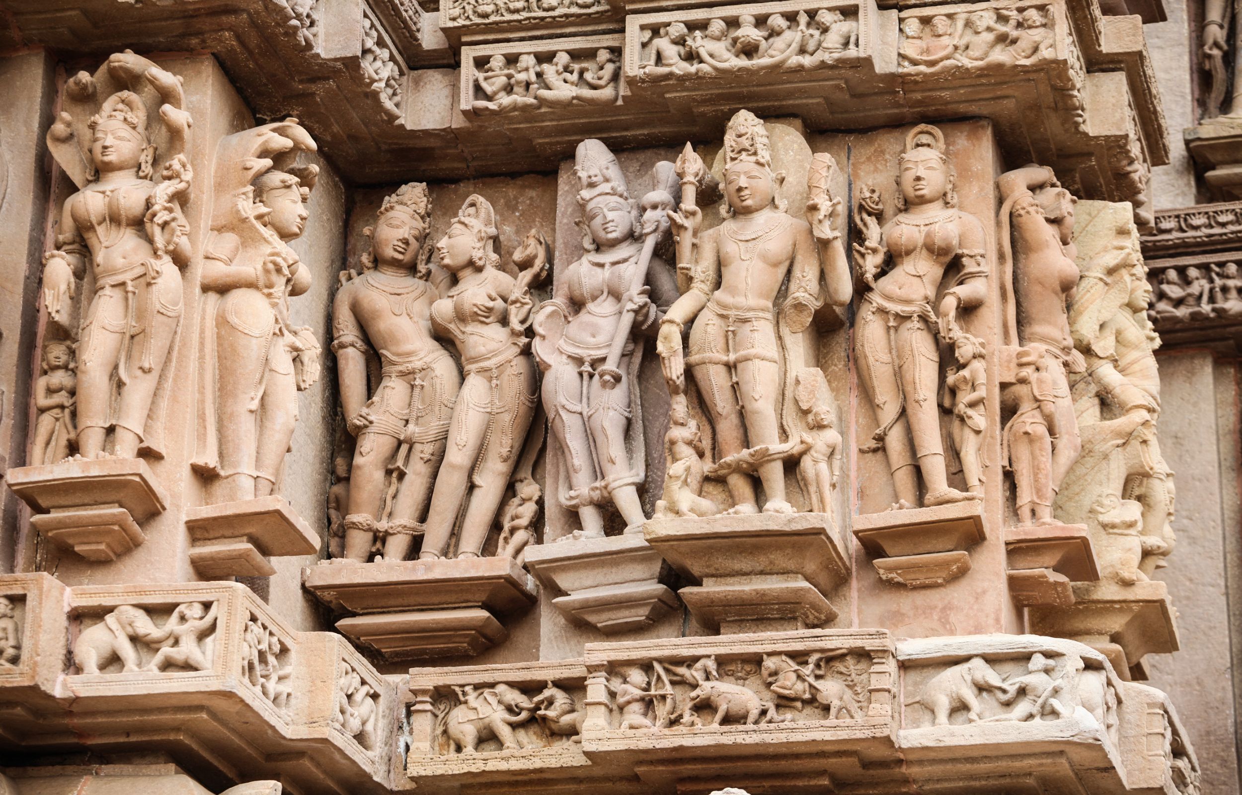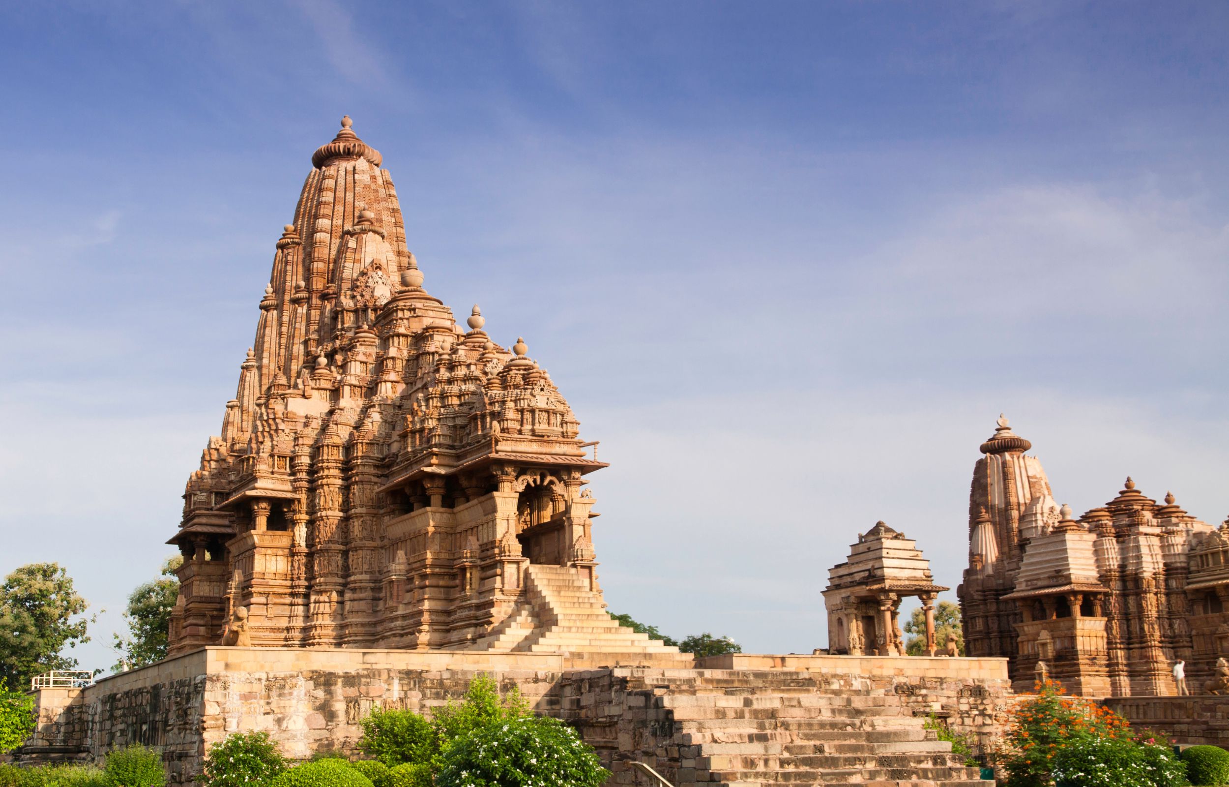 接下来,参观联合国教科文组织世界遗产克久拉霍寺庙。这 25 座寺庙的历史可追溯至 10 世纪,拥有复杂的长拉风格雕刻,描绘了爱、激情和灵性的主题,颂扬印度教和耆那教的艺术。最后在您的饭店下车。