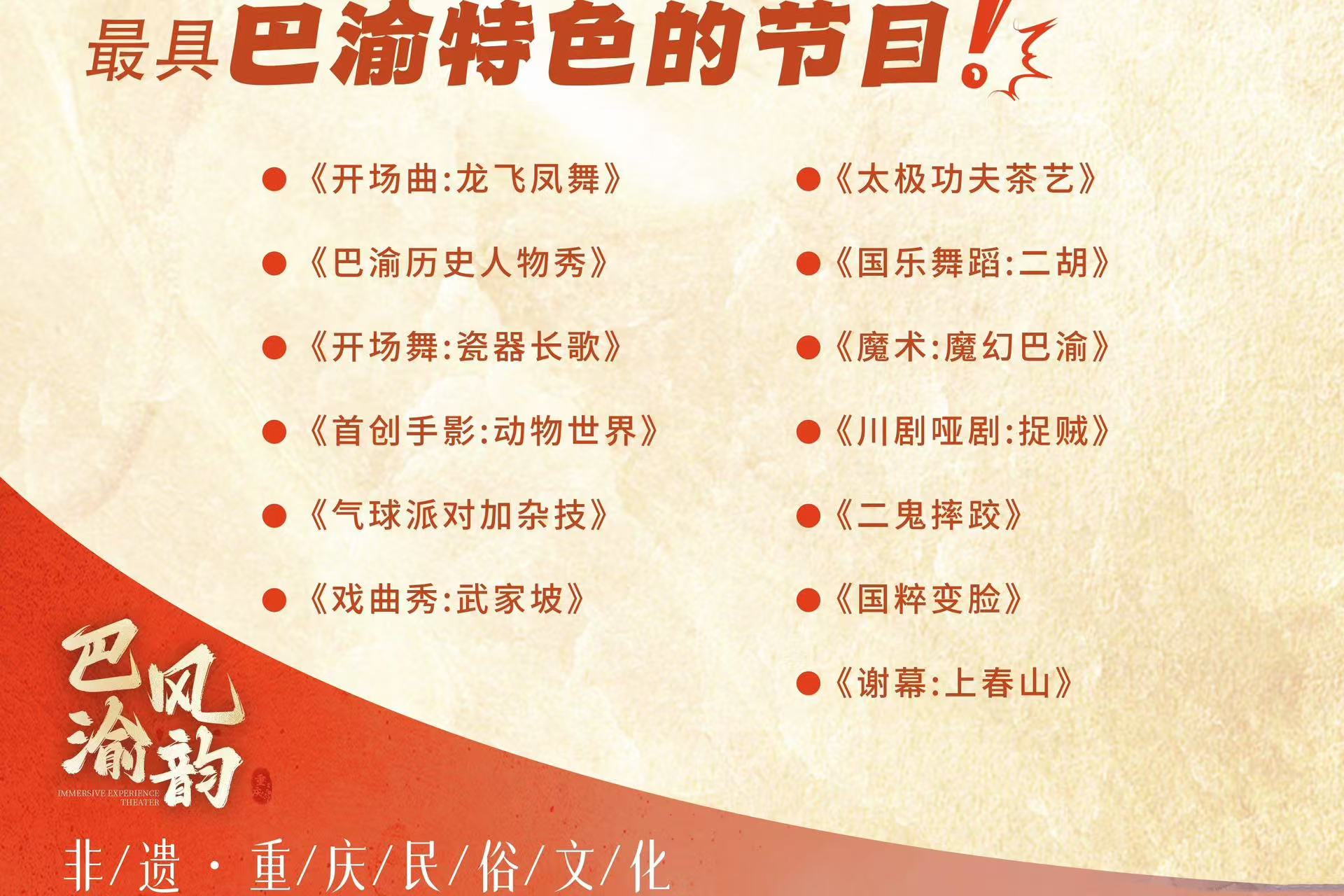 重庆巴风渝韵传统表演剧(二胡乐器+川剧变脸+惊险杂技+盖碗茶)