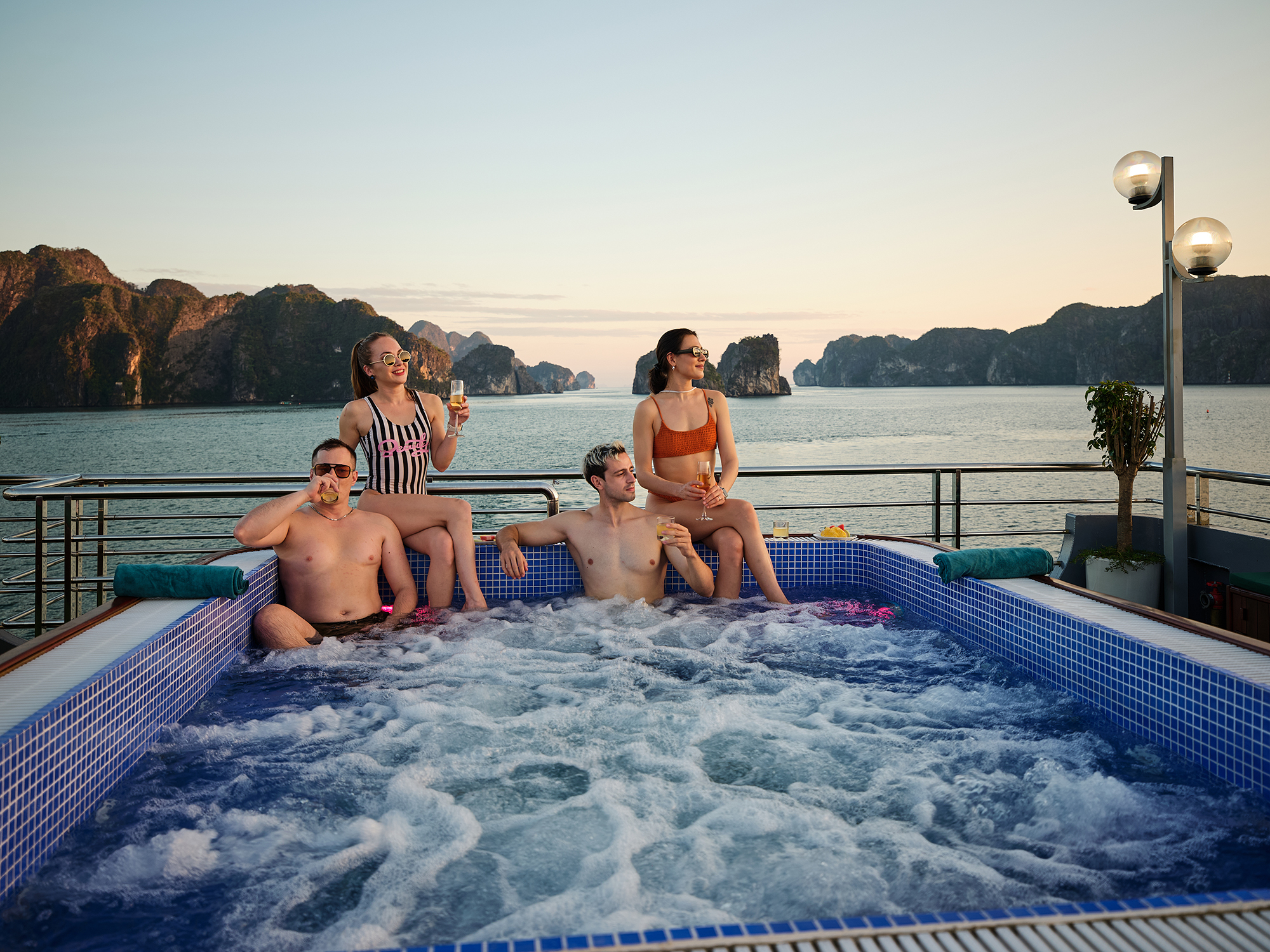 登上备受推崇的五星级海狮高级游轮,开始下龙湾的精致一日游。您的冒险之旅从探索以令人惊叹的钟乳石和石笋而闻名的宋索洞开始。穿过宁静的水域到达 Luon 洞,那里有郁郁葱葱的绿色植物和宁静的氛围。接下来,在船上享用丰盛的自助午餐,包括各种美味的当地和国际美食。午餐后,前往 Ti Top 岛,在原始的海滩上放松身心,或爬到山顶欣赏全景。在整个旅程中,知识渊博的导游将为您介绍海湾的地质奇观和文化意义。这次旅行将为您带来难忘的奢华、放松和探索体验,让您在越南最具代表性的目的地之一尽享难忘的体验。