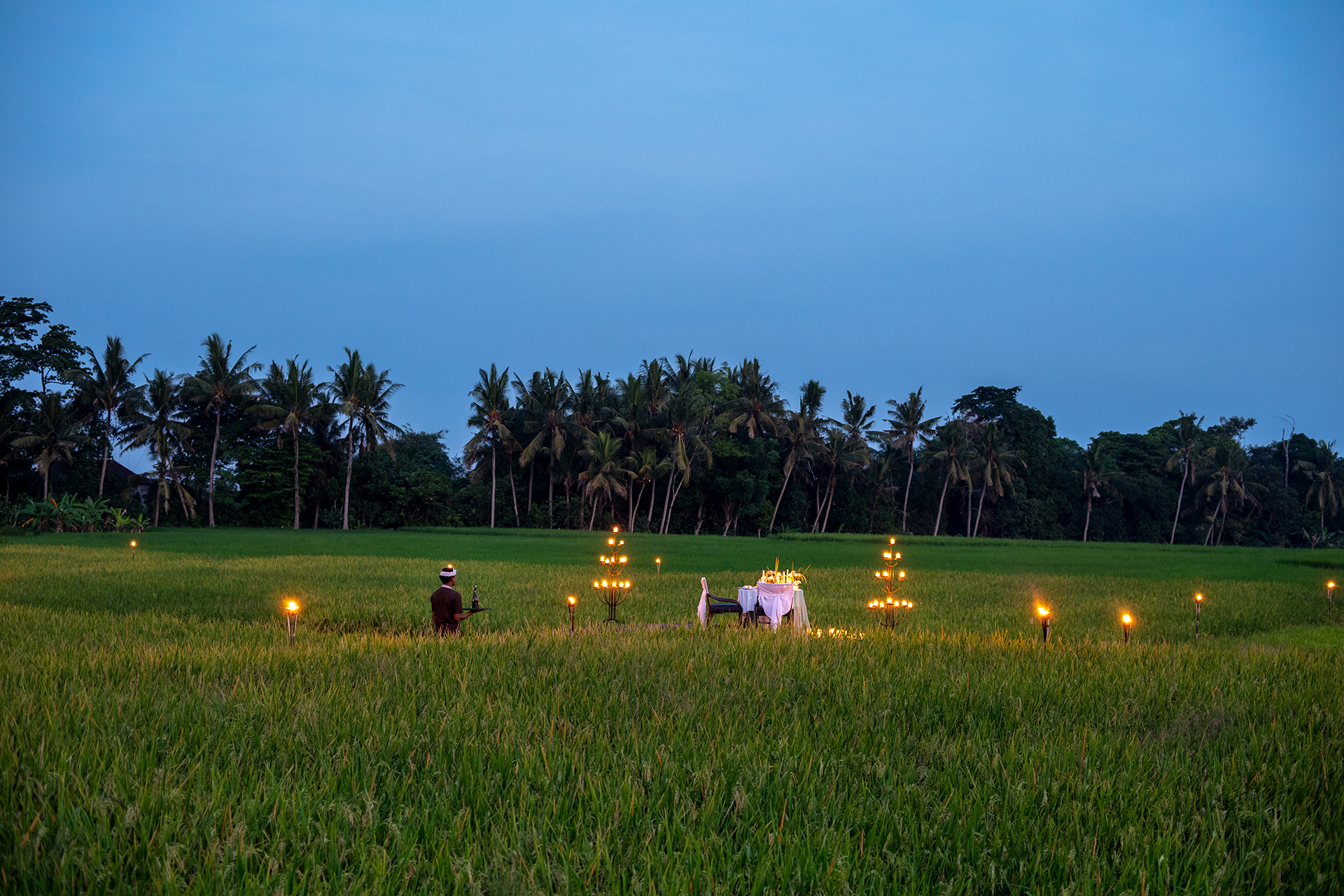 带您所爱的人在令人惊叹的乌布稻田中享用浪漫晚餐