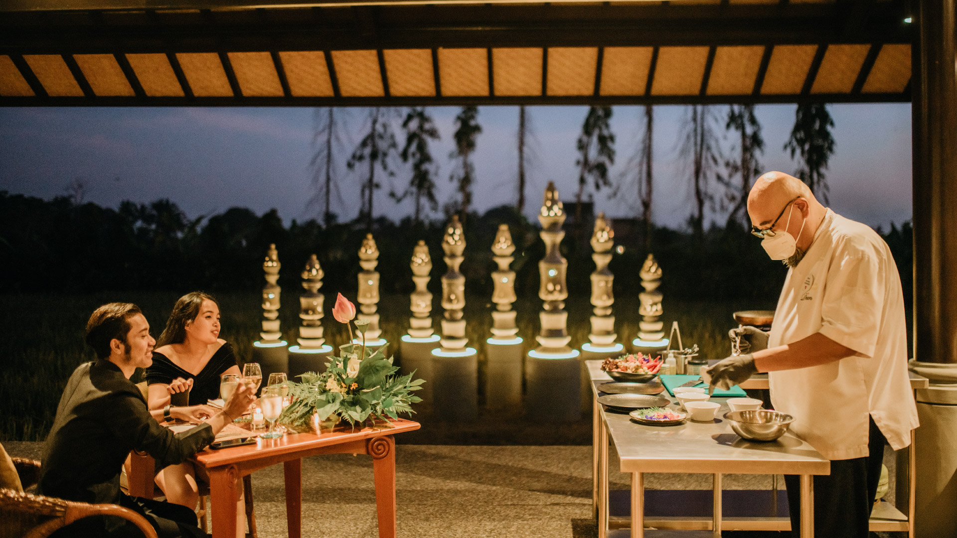体验仅在乌布 Tanah Gajah 餐厅由 Dean 厨师准备的主厨搭配晚餐