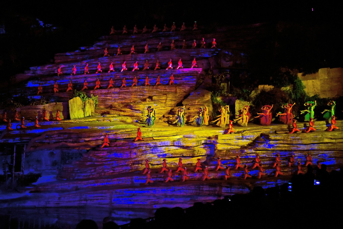 傍晚18:30左右,从张家界市区出发,乘车前往天门山峡谷剧场,享受沿途的自然风光。抵达后,入场天门山峡谷剧场并寻找合适的观赏位置,稍作休息为即将开始的《天门狐仙》实景演出做准备。该演出以天门山的自然景观为背景,巧妙融合传统艺术与现代科技,为观众带来一场视觉与听觉的双重盛宴。(请注意,《天门狐仙》演出的开始时间为20:20,演出时长约60分钟,请提前规划好时间进行检票。)