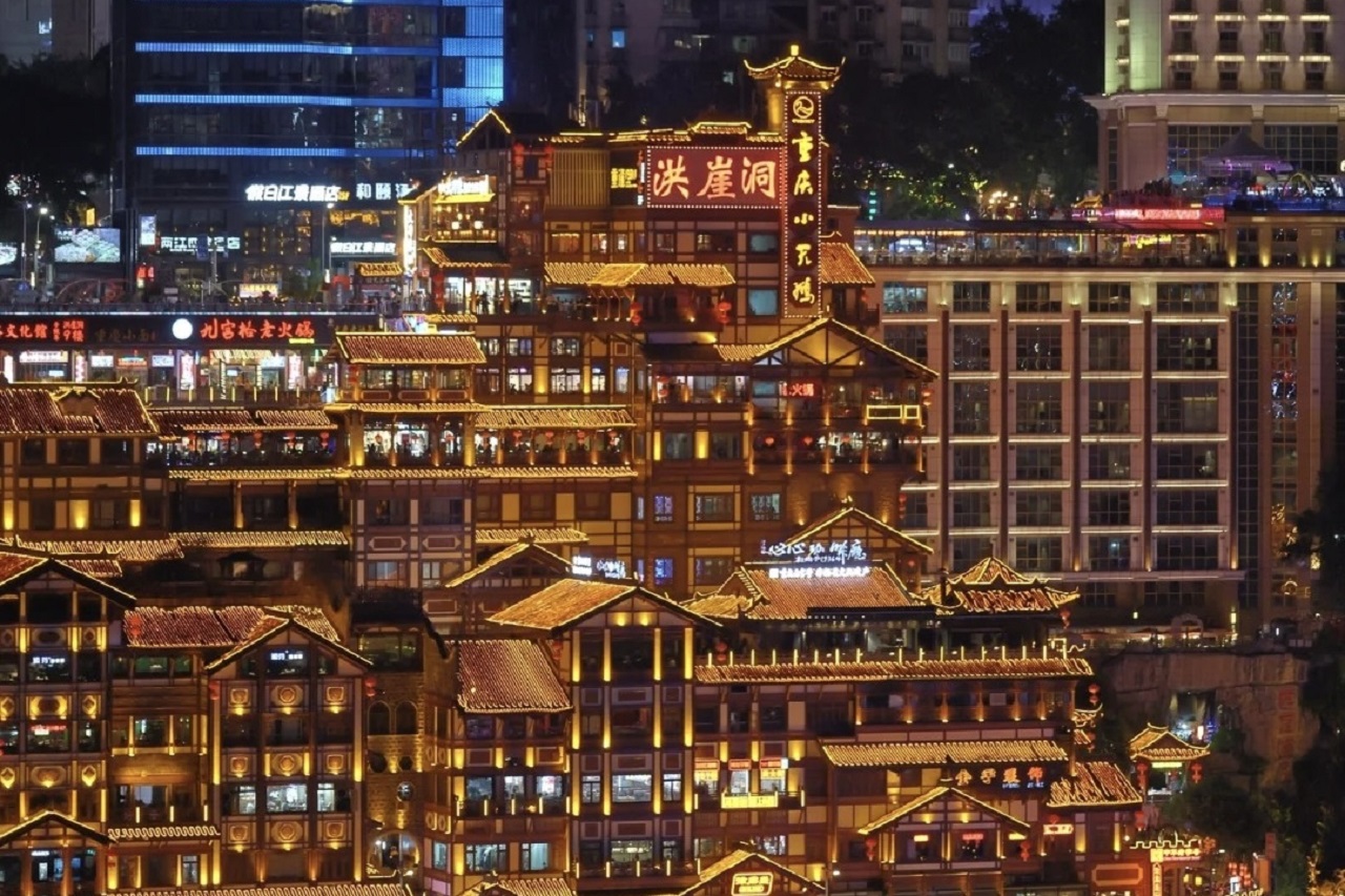 洪崖洞民俗风貌区现实版的千与千寻,更是凭借辉煌而闻名全国。