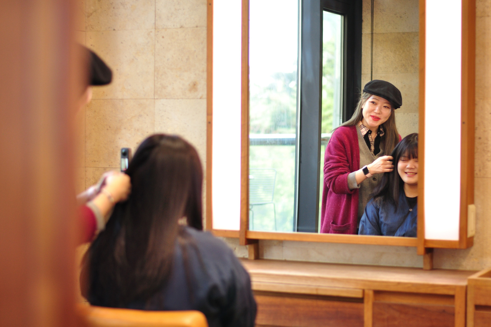 B-1. 造型咨询 – 选择所需造型 – 洗发 – 化妆 – 发型设计(吹干)