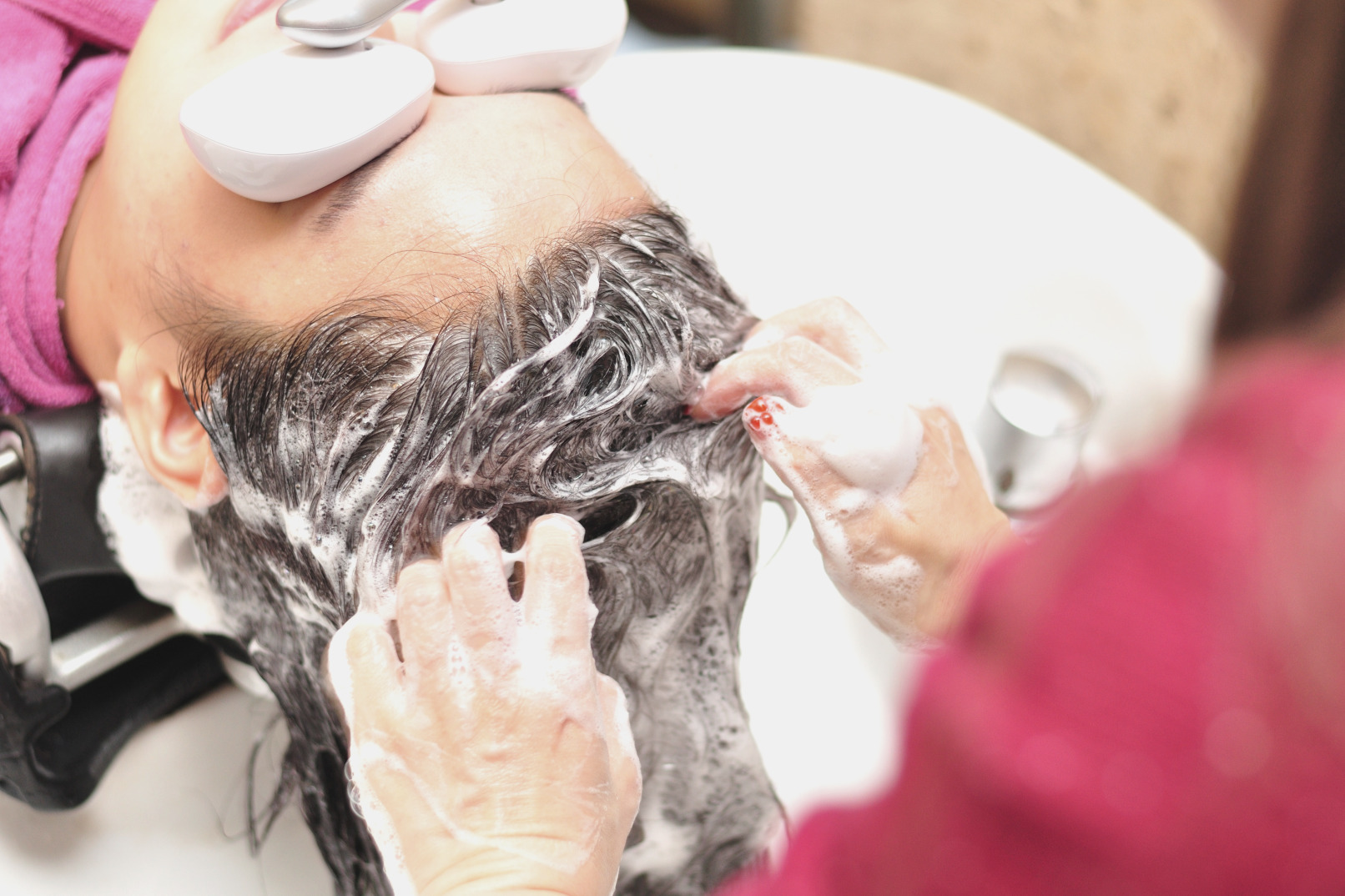 A-2. 头皮及头发检查 – 琥珀洗发 – 安瓿按摩 – 热安瓿护理(保湿或防脱发安瓿) – 洗发 – 头皮及头发护理 – 洗发 – 吹干