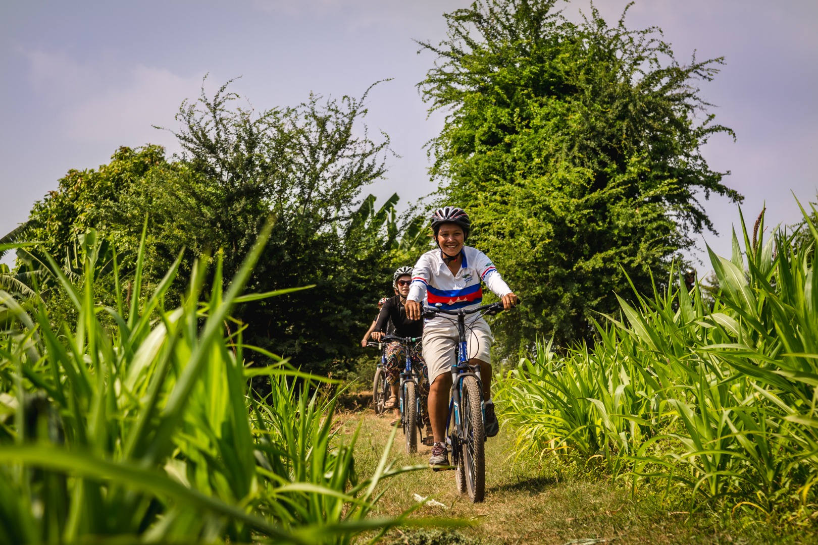 踏上前往湄公群岛的自行车冒险之旅,逃离柬埔寨首都的喧嚣!当您在湄公河丝绸岛的安静小路、果园、市场花园和农田中航行时,可以一睹充满活力的柬埔寨文化。在 Areiksart 渡轮码头左侧的花园开始您的早晨探险活动,在那里您将听到有关当天活动的简短介绍,并收到适合您的自行车。之后,您将登上前往丝绸岛的渡轮。抵达后,准备好在令人兴奋的 20-25 公里骑行中锻炼肌肉,穿越占族穆斯林社区,并了解在岛上安家的当地人的日常生活。在返回金边市之前,您可以享用美味的当地高棉菜肴午餐,并搭配新鲜水果和水来补充能量,结束您激动人心的岛屿探险之旅。