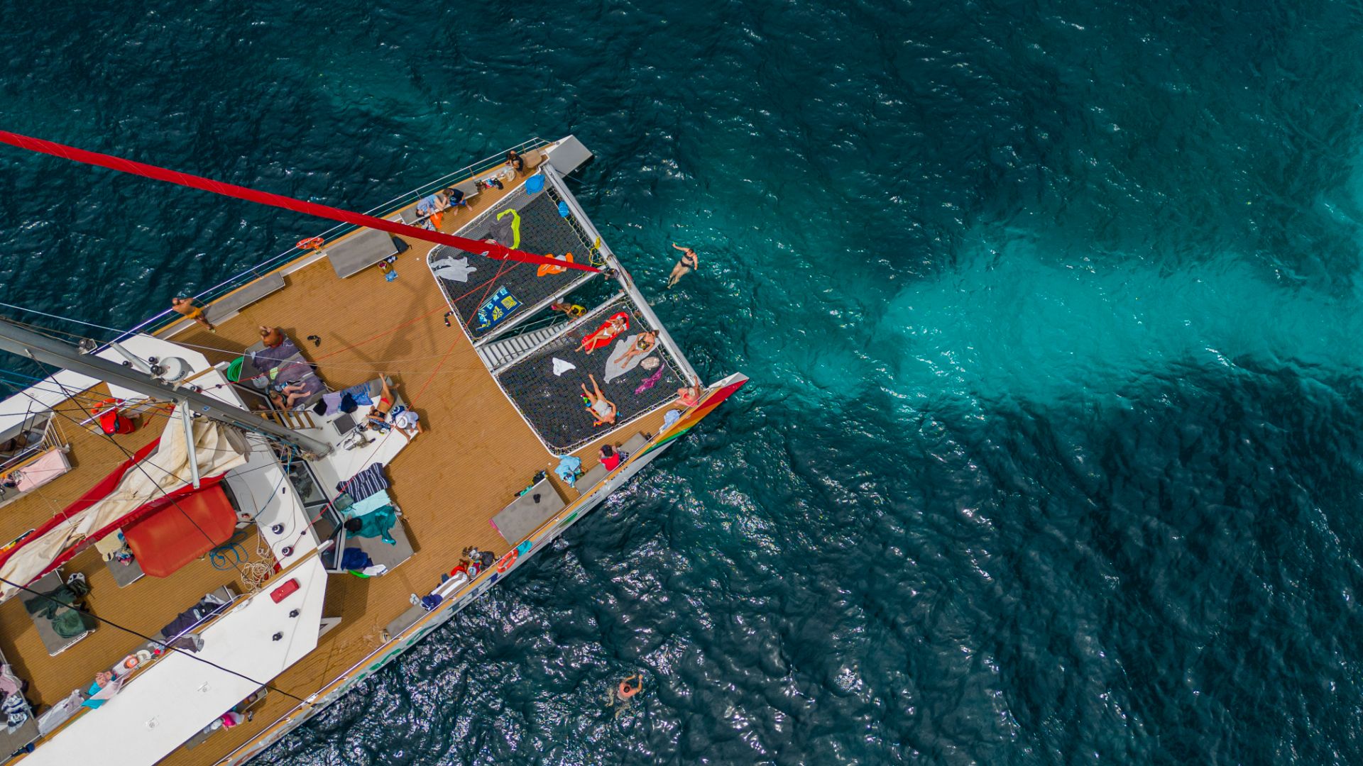 航行到宁静的地方,周围环绕着波光粼粼的海水和无尽的天空