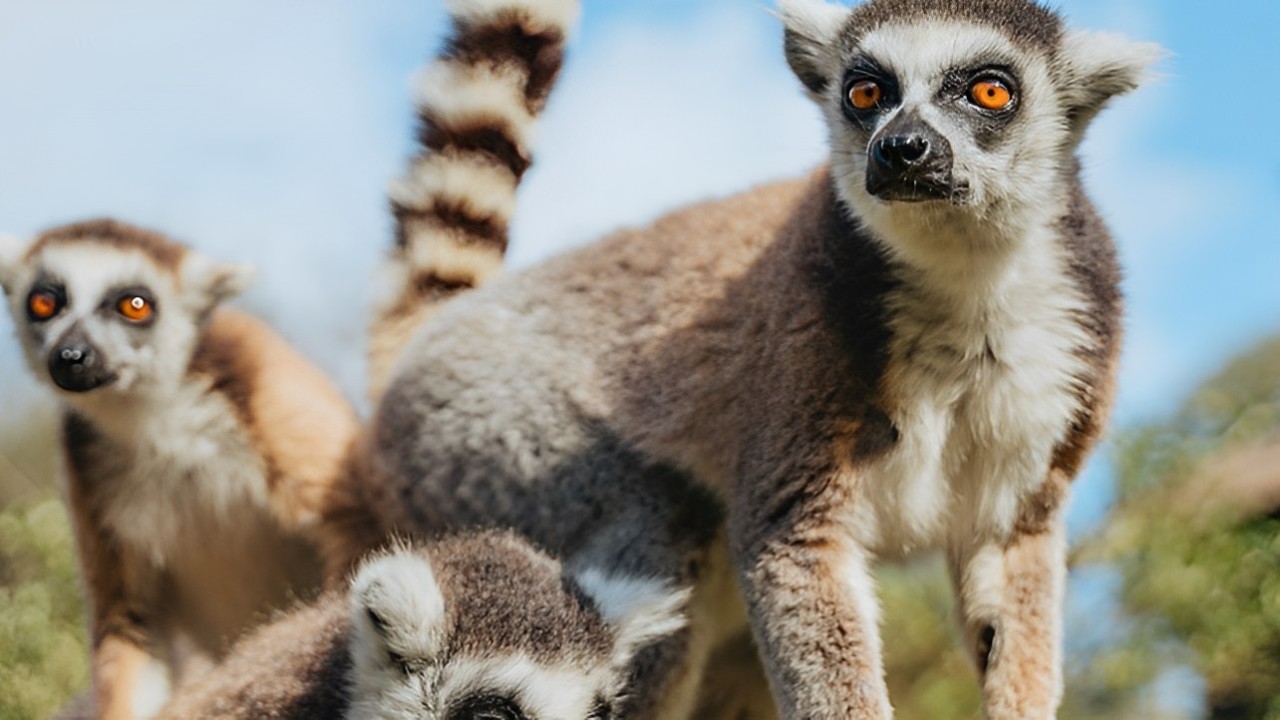 狐猴在树枝上聚集在一起,顽皮地互动并展示它们的敏捷性