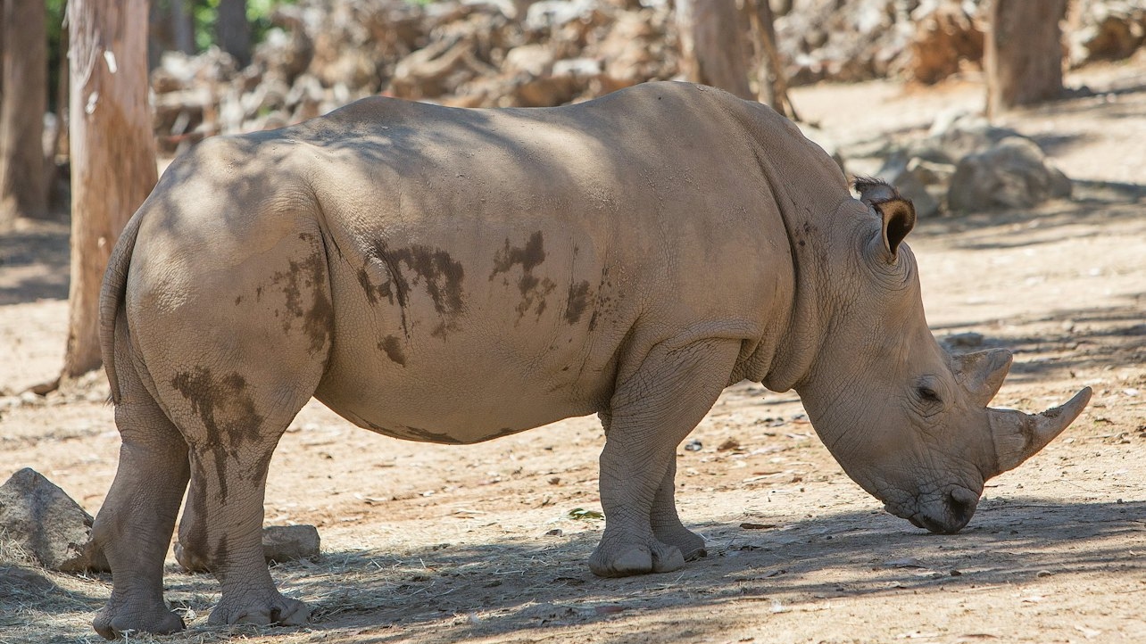 在圣伊纳西奥动物园 (Zoo Santo Inacio) 观赏雄伟的犀牛漫步
