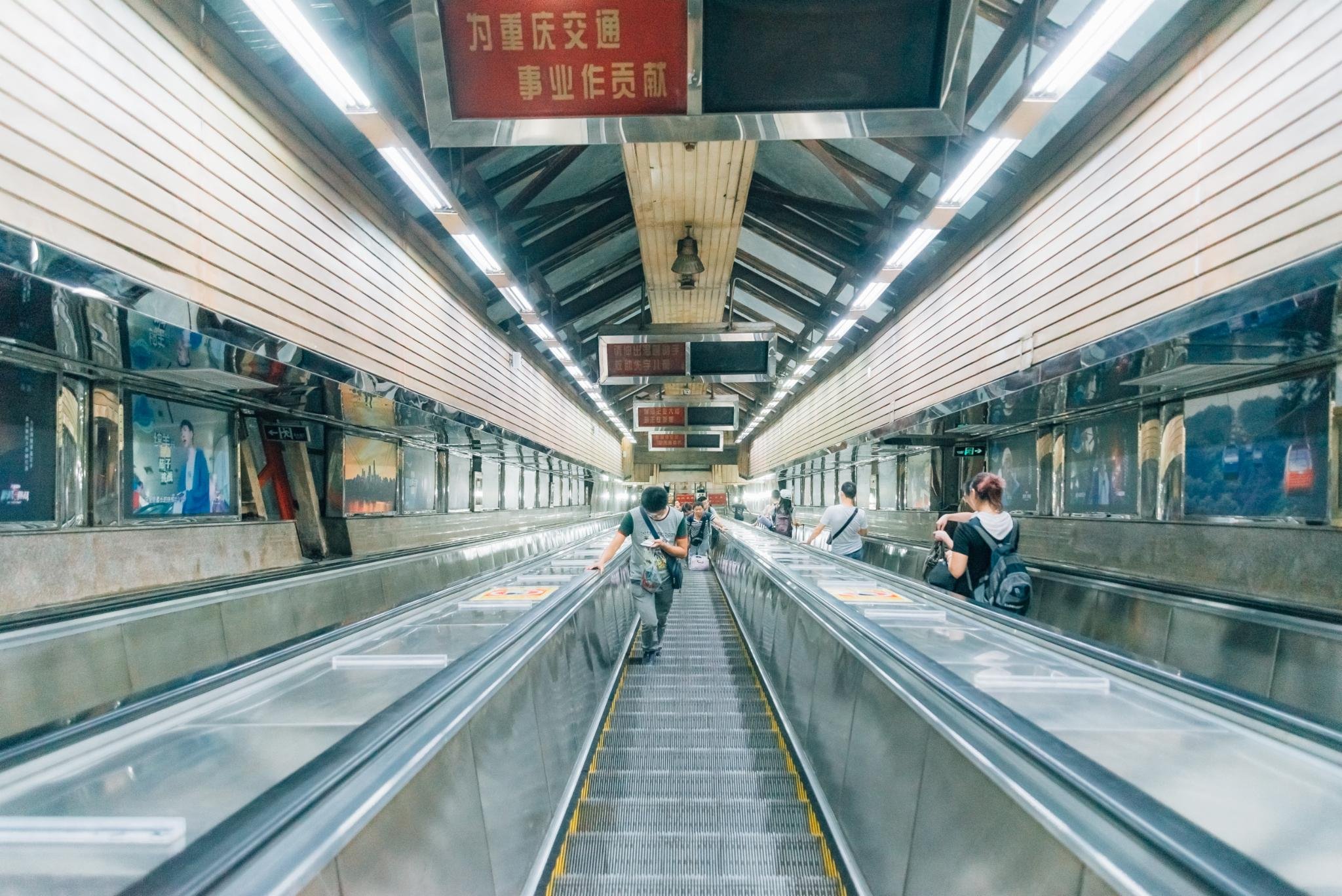 皇冠大扶梯,全程运行2分30秒,是重庆人民出行的特色交通之一,也是很多游客到重庆游玩时的网红打卡地。