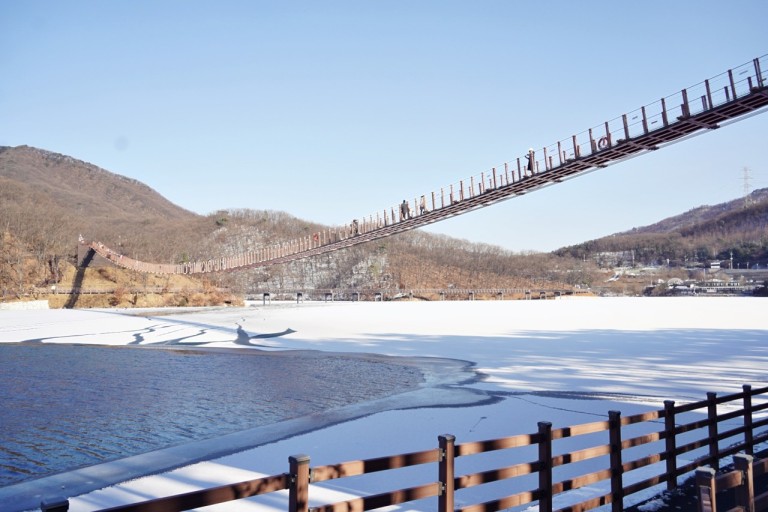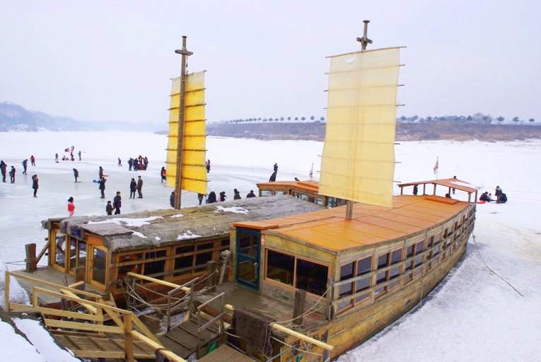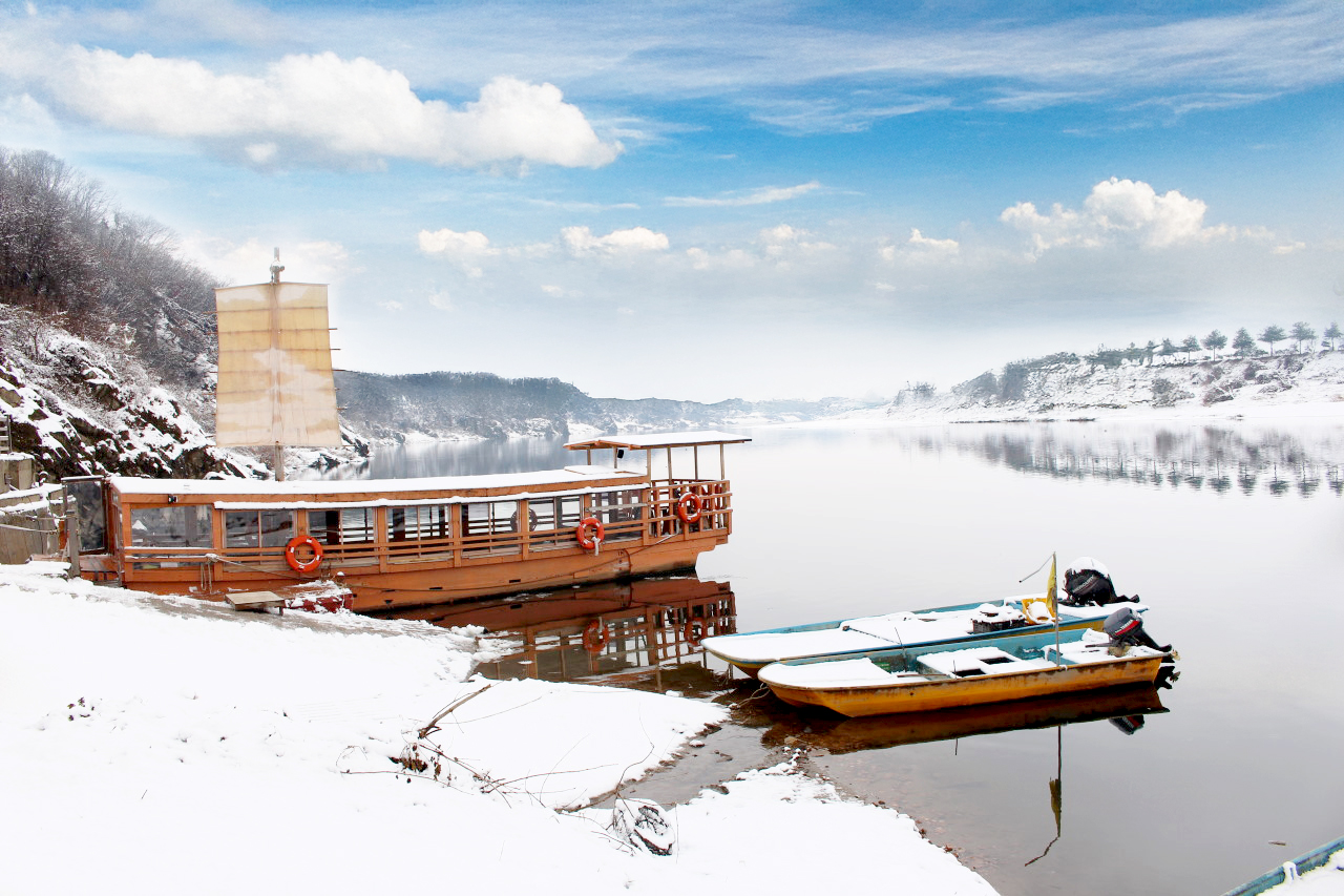 黄浦船是朝鲜王朝时期的传统船只的复原品,在临津江上提供独特的游览体验,自然与历史在这里融为一体。冬季,白雪皑皑的悬崖和宁静的河流营造出更加迷人的风景。