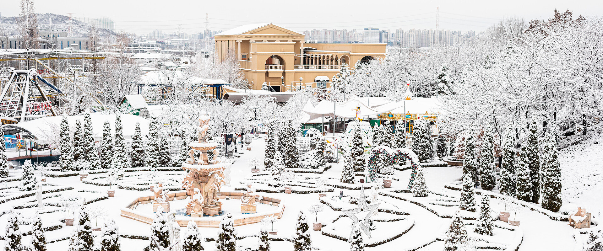 第一花园的冬日!在晴朗的冬日天空下,感受花园的宁静之美,探索独特的冬季景观的魅力。
