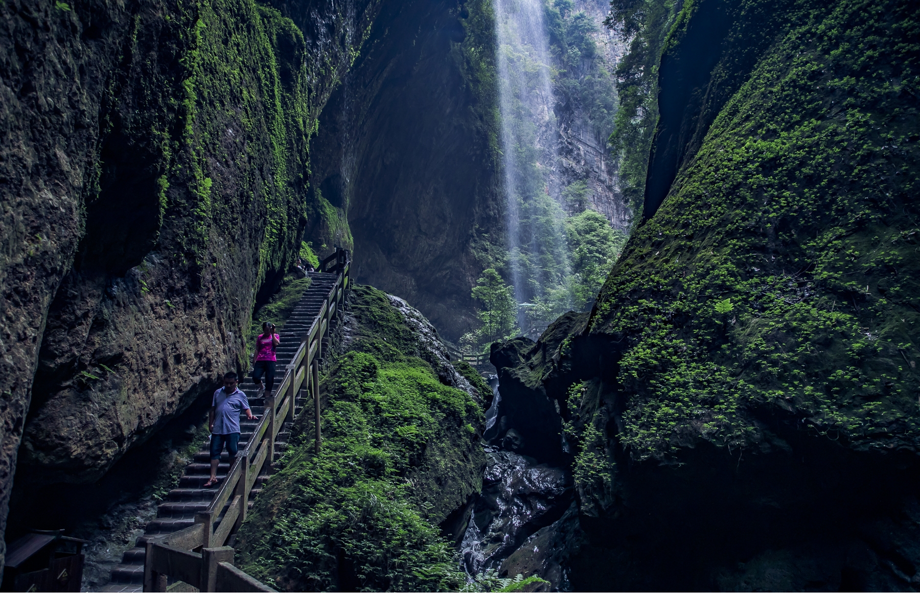 武隆龙水峡地缝:世界最大天生桥群和世界第二大天坑群相映生辉,坑与坑之间以桥洞相望,桥与桥之间以坑相连,规模宏大,气势磅礴,瑰丽壮观。