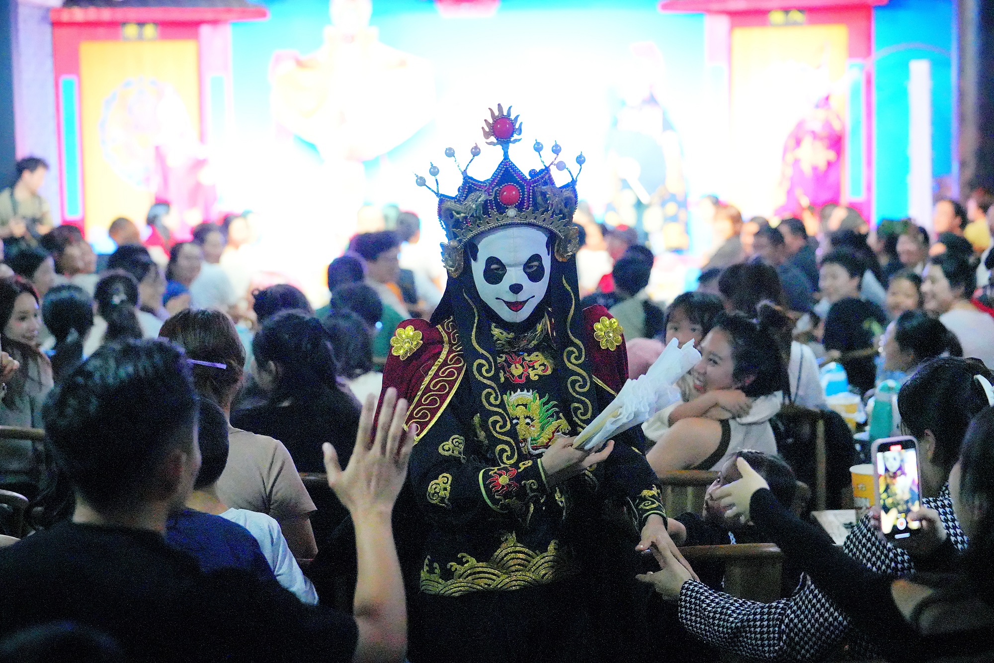 当在变脸互动的环节时,还可以与变脸演员击掌互动。