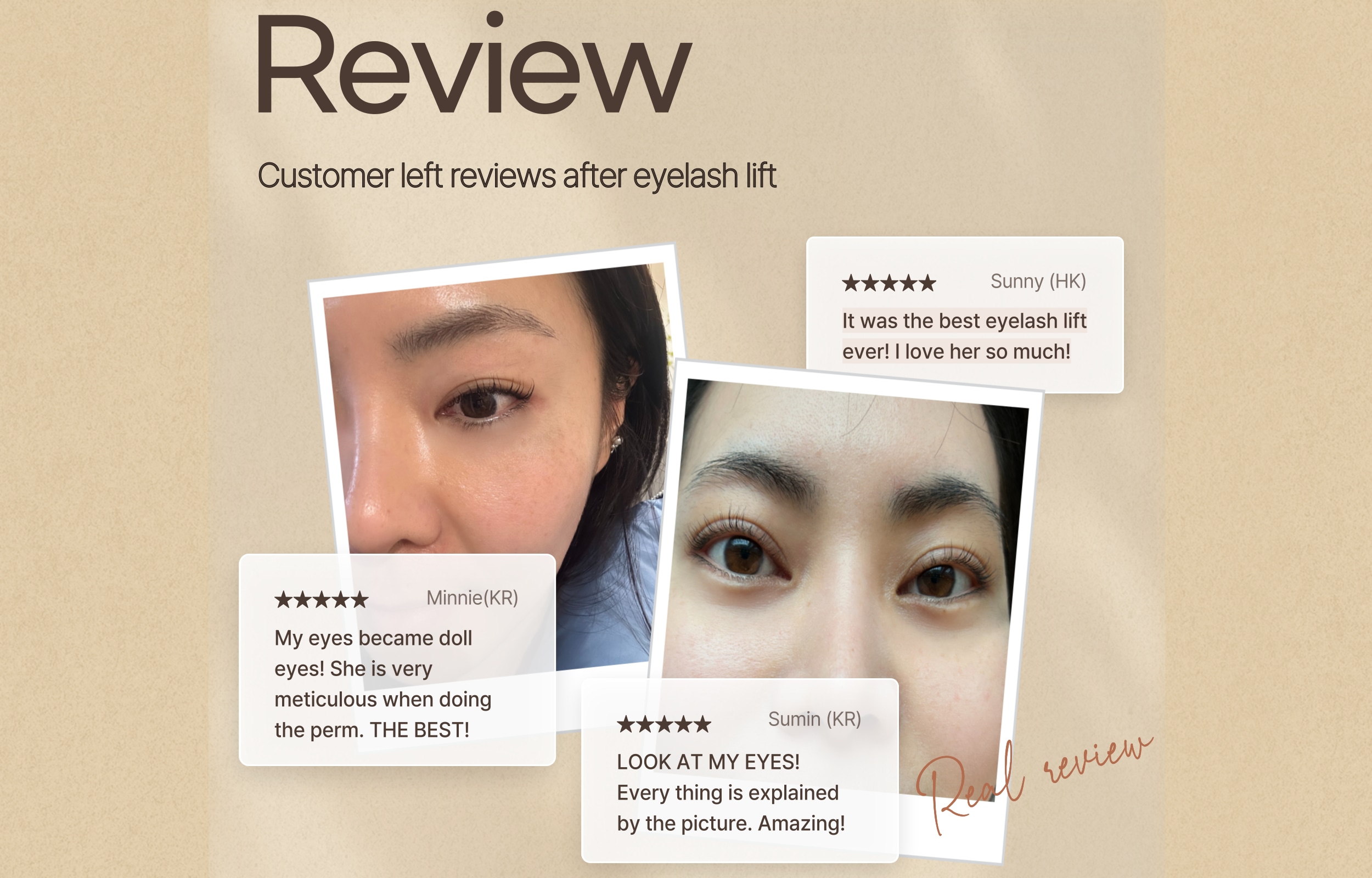 - 我们只使用优质昂贵的产品进行烫发,无需胶水,以保持睫毛健康美丽。因为我们非常关心睫毛。