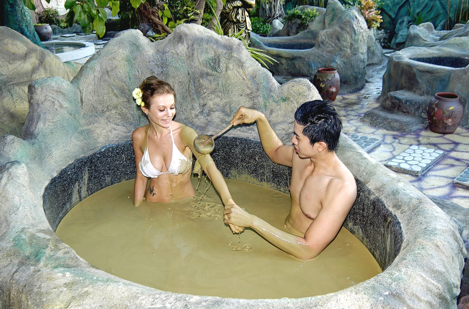在泥浴中减压和排毒