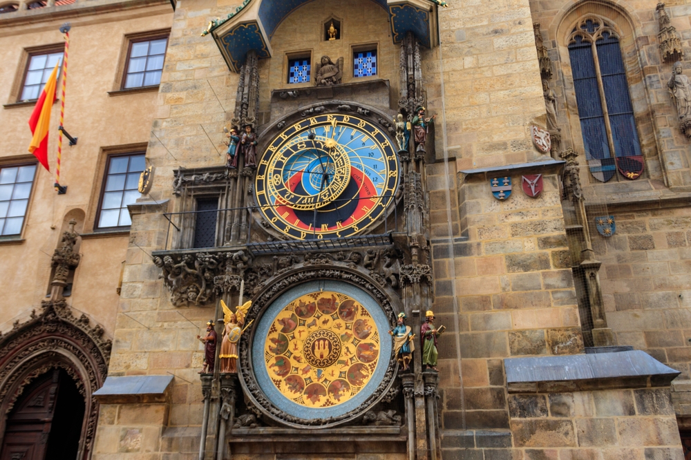 布拉格的天文钟 (Orloj) 是旧市政厅的中世纪奇迹,以其复杂的设计和每小时的使徒游行吸引游客。
