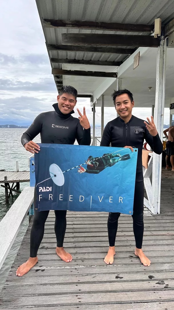 一切准备就绪,我们的自由潜水员迫不及待地想要拥抱水下世界的自由!