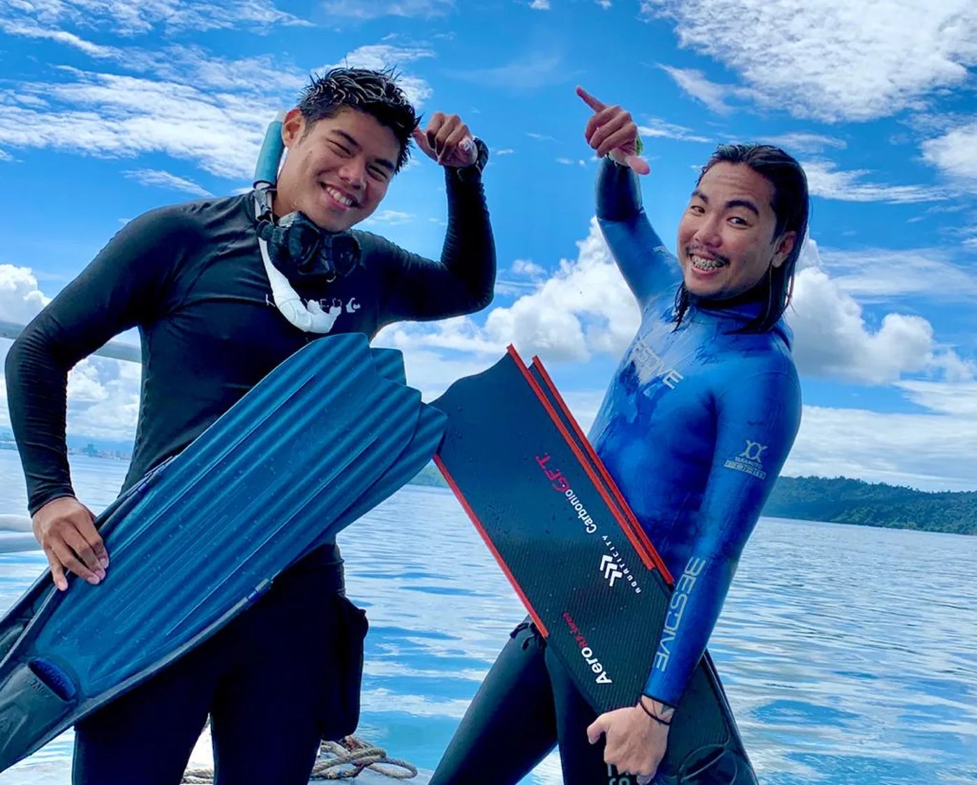 怀着灿烂的笑容和更大的梦想,我们的自由潜水员准备一头扎进蔚蓝的大海。