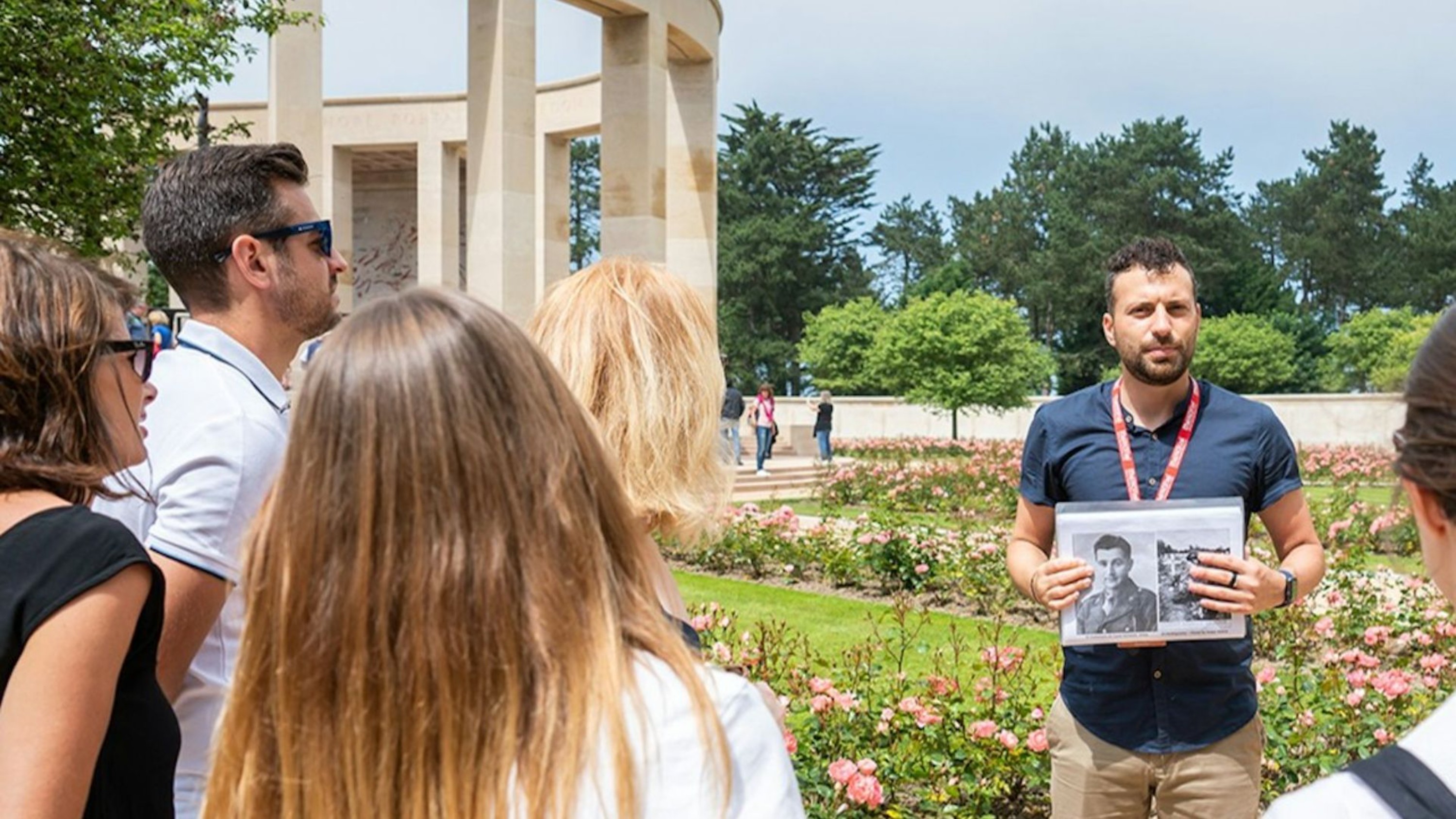 在诺曼第美军公墓宁静的安息地悼念阵亡将士