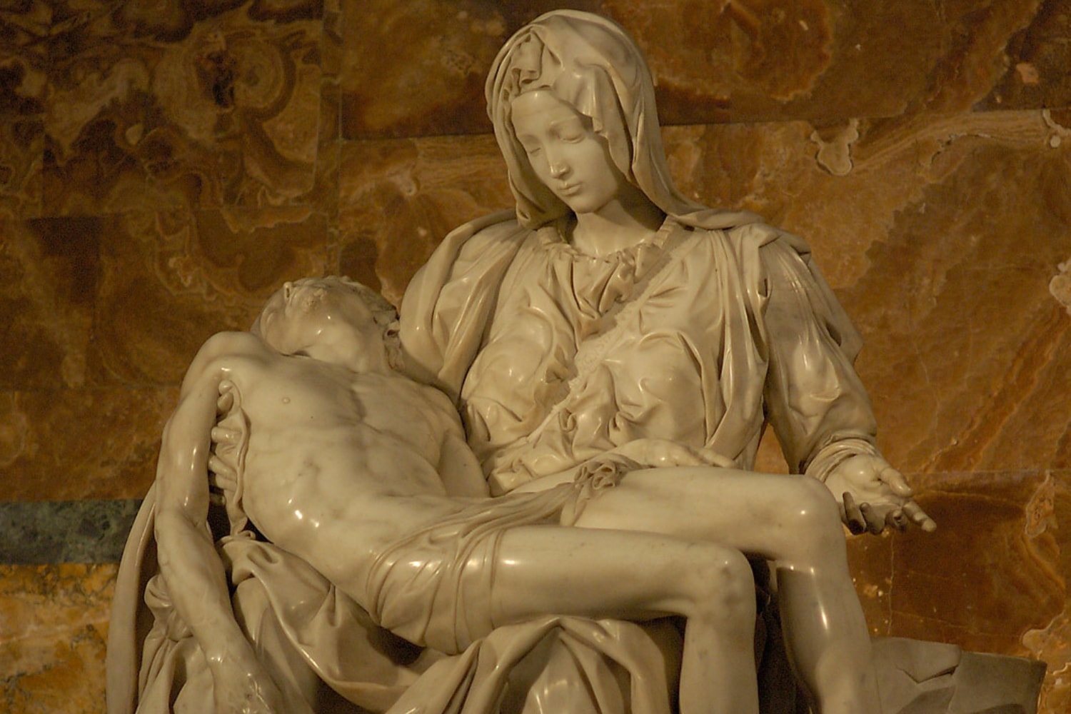 在圣彼得大教堂宁静的孤独中欣赏米开朗基罗的《圣母怜子图》