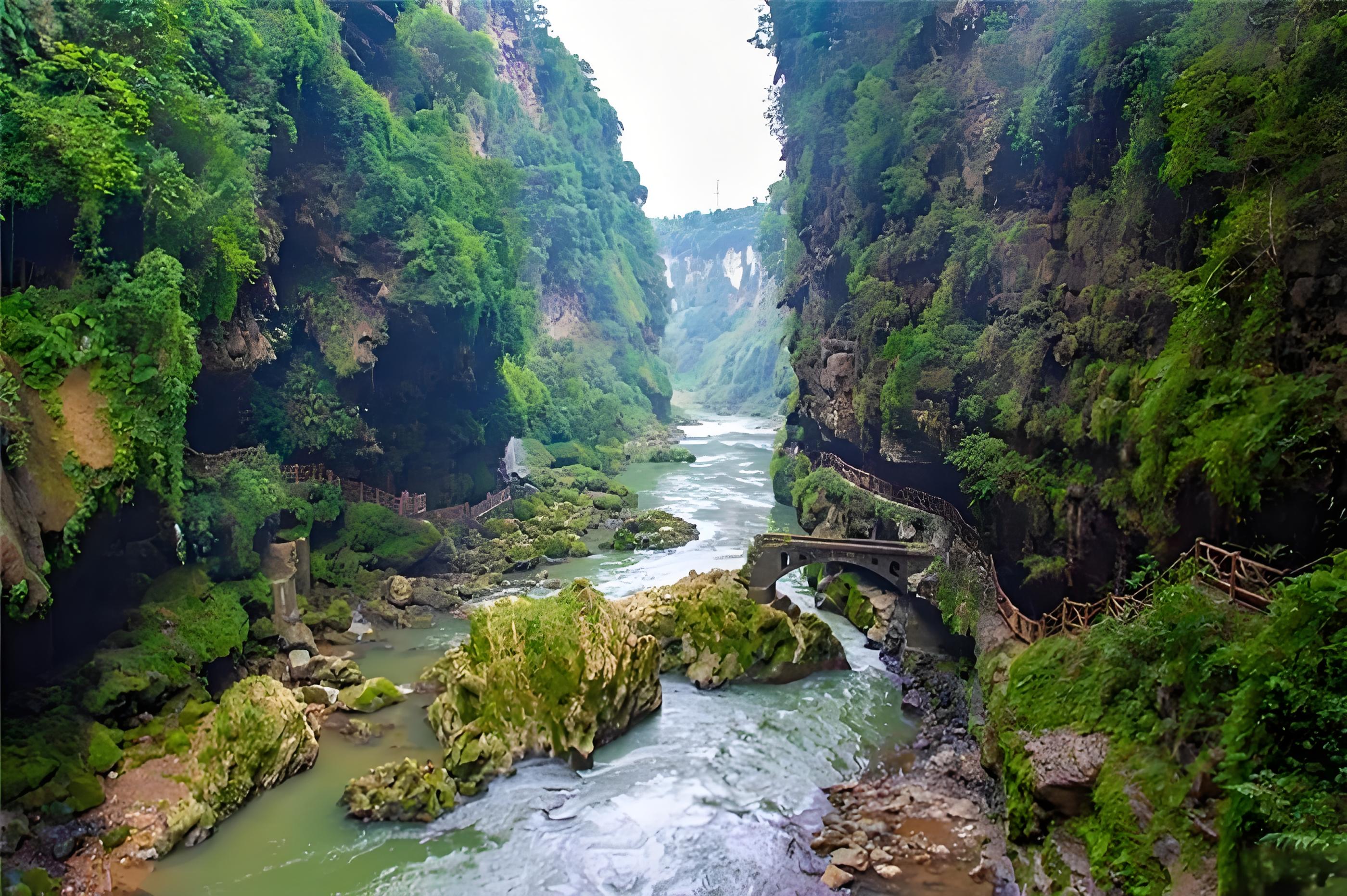 紧接着,我们前往织金大峡谷,这里又是一番别样的风光。壮观的瀑布、神秘的暗河,每一处都让人流连忘返。您可以乘船游览暗河,感受峡谷的深邃与神秘。漫步在峡谷间,秀美的山水风光与清新的空气交织在一起,让人心旷神怡,仿佛与大自然融为了一体。