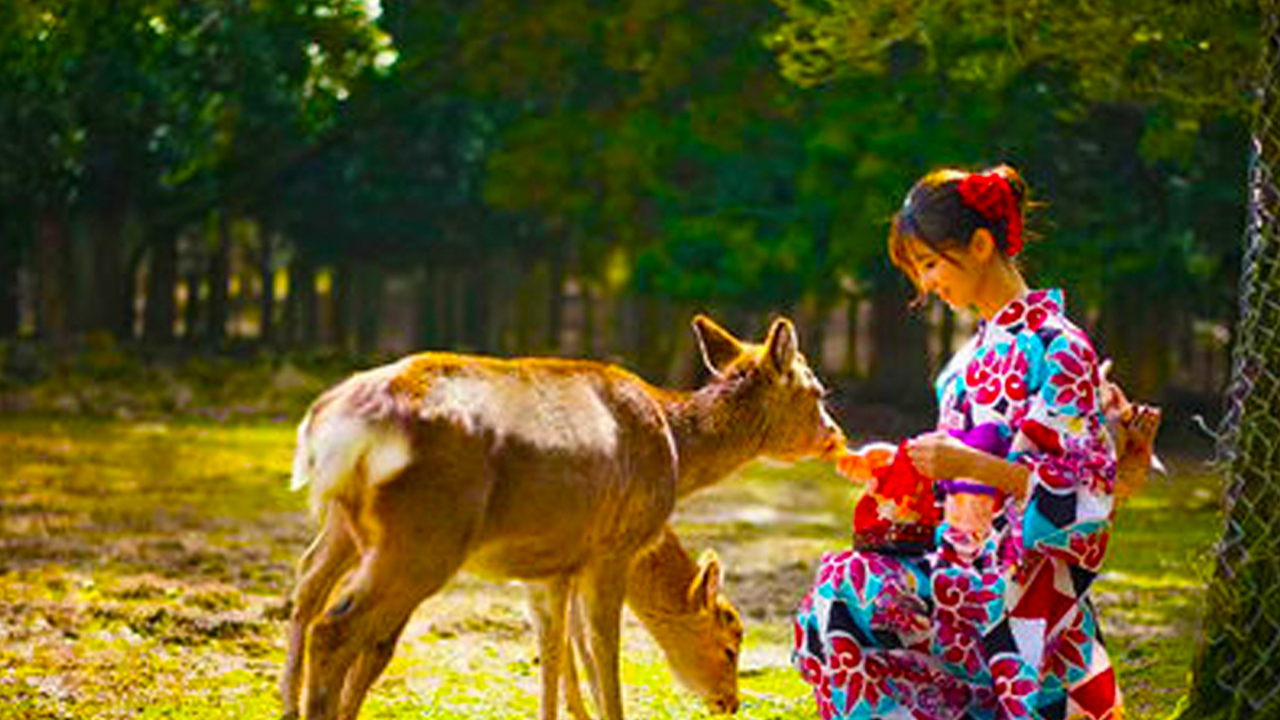奈良公园是位于奈良市若草山麓的都市公园,东大寺、春日大社等奈良的名胜古迹都在这里,是游奈良的必到之处。位于公园附近的若草山是俯瞰奈良风光的绝妙之地