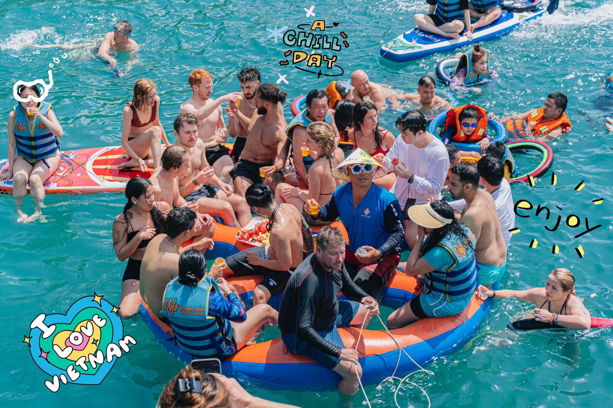 在珊瑚礁探索海洋生物,在 Hon Tam Merperle 享受泥浴体验。此外,游客还可以参加许多海上活动,如巨型水滑梯、桨板冲浪、提供鸡尾酒和水果的浮动酒吧、享受专业乐队的音乐氛围等等!