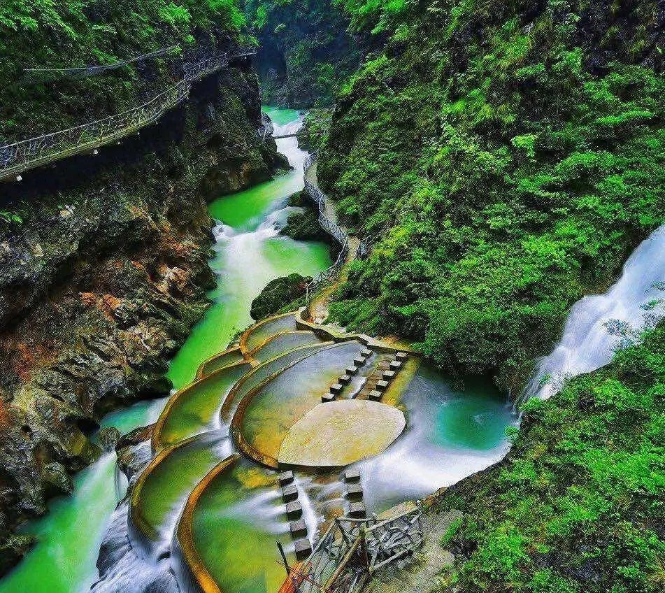 午后,乘车前往铜仁大峡谷。抵达后,您将乘船游览峡谷,河水清澈见底,两岸峭壁高耸,形成壮观的峡谷风光。沿途,您可以欣赏到形态各异的奇石和飞瀑,每一处都展现出大自然的神奇魅力。随着船只缓缓前行,您将仿佛置身于一幅流动的山水画中,感受大自然的宁静与壮美。随后,沿着峡谷栈道漫步,探访小龙潭瀑布等景点。栈道两旁绿树成荫,空气清新宜人,让您在轻松愉悦的氛围中,感受大自然的宁静与神秘。