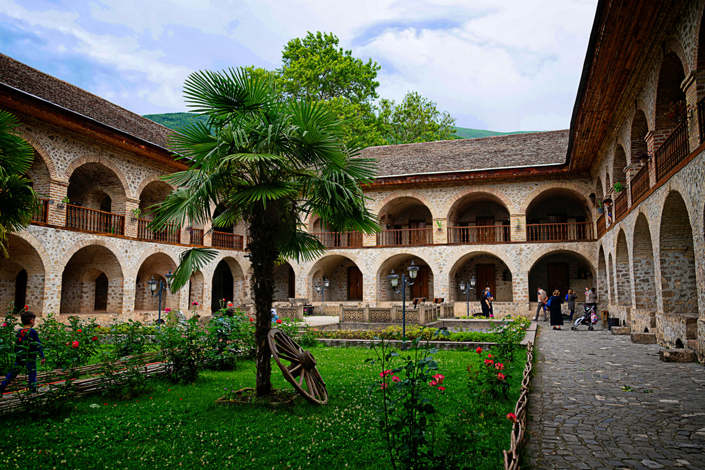 一天的行程从参观宏伟的舍基可汗宫开始,这是阿塞拜疆建筑的杰作,以其精致的彩色玻璃窗和色彩缤纷的壁画而闻名。