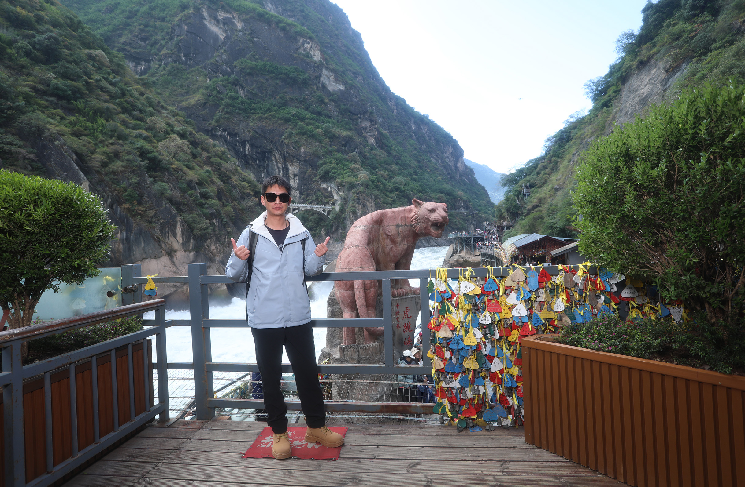 金沙江虎跳石景观台,相传,猛虎凭借这块巨石来回于玉龙、哈巴两座雪山,因此而得名。
