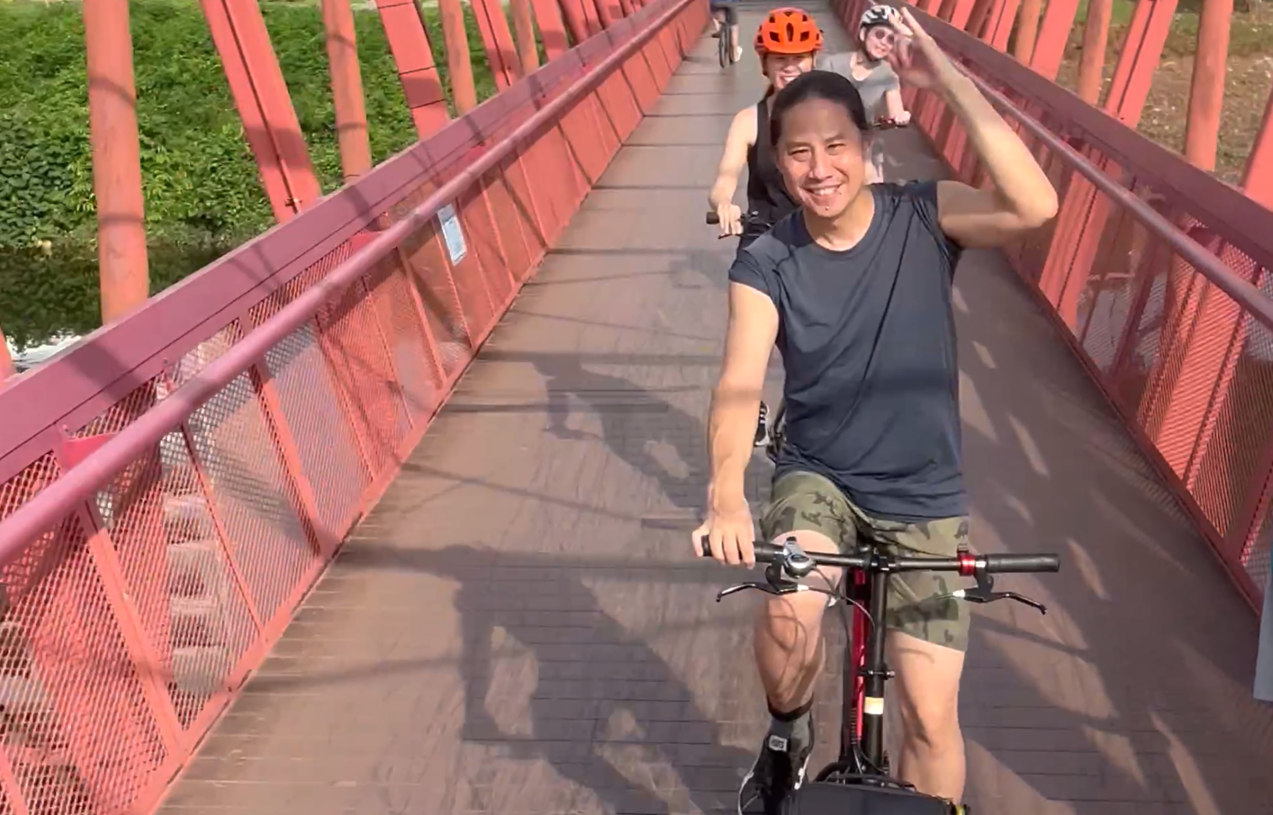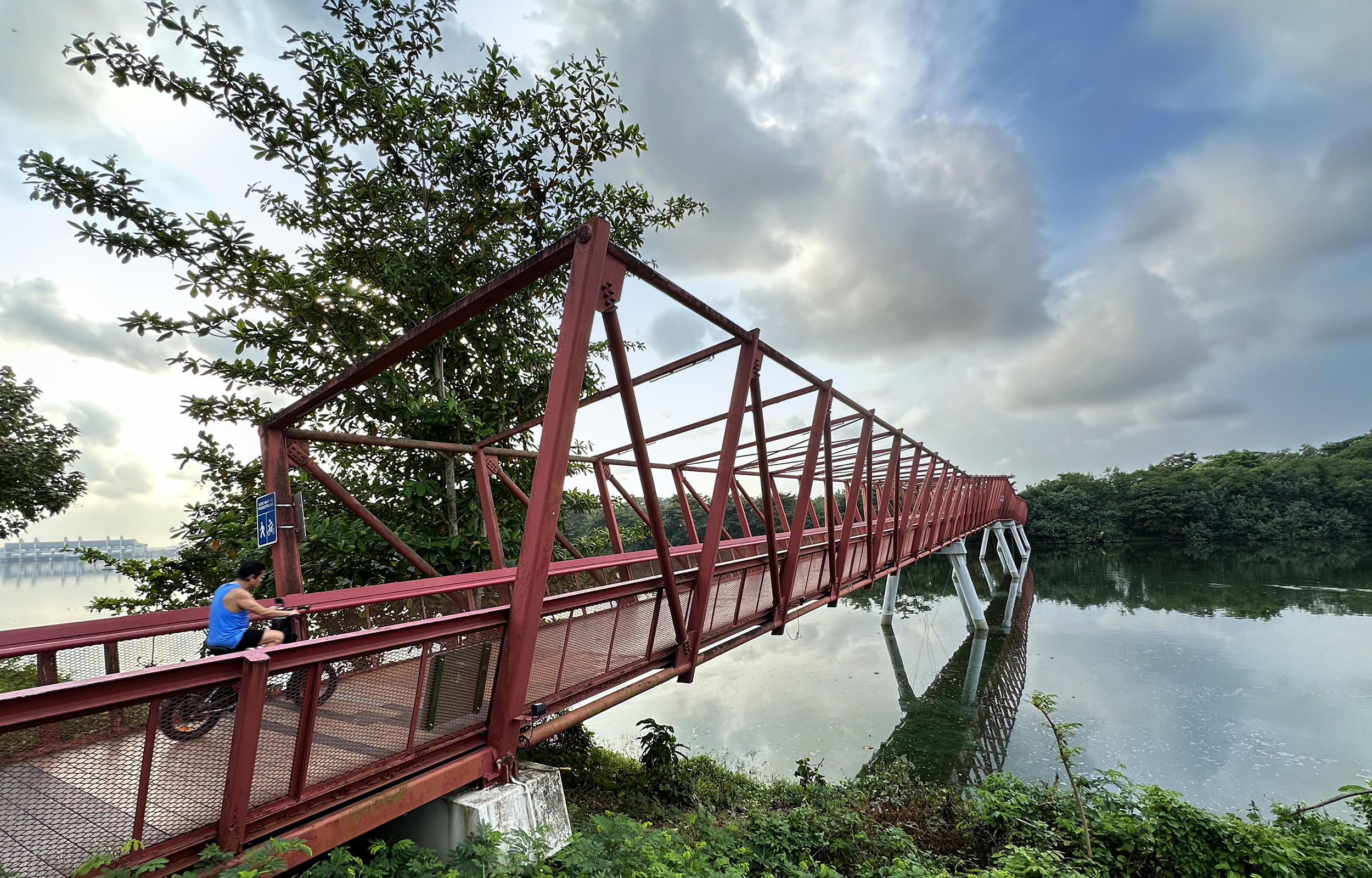 骑车穿过 Lorong Halus 红桥前往湿地和白沙公园