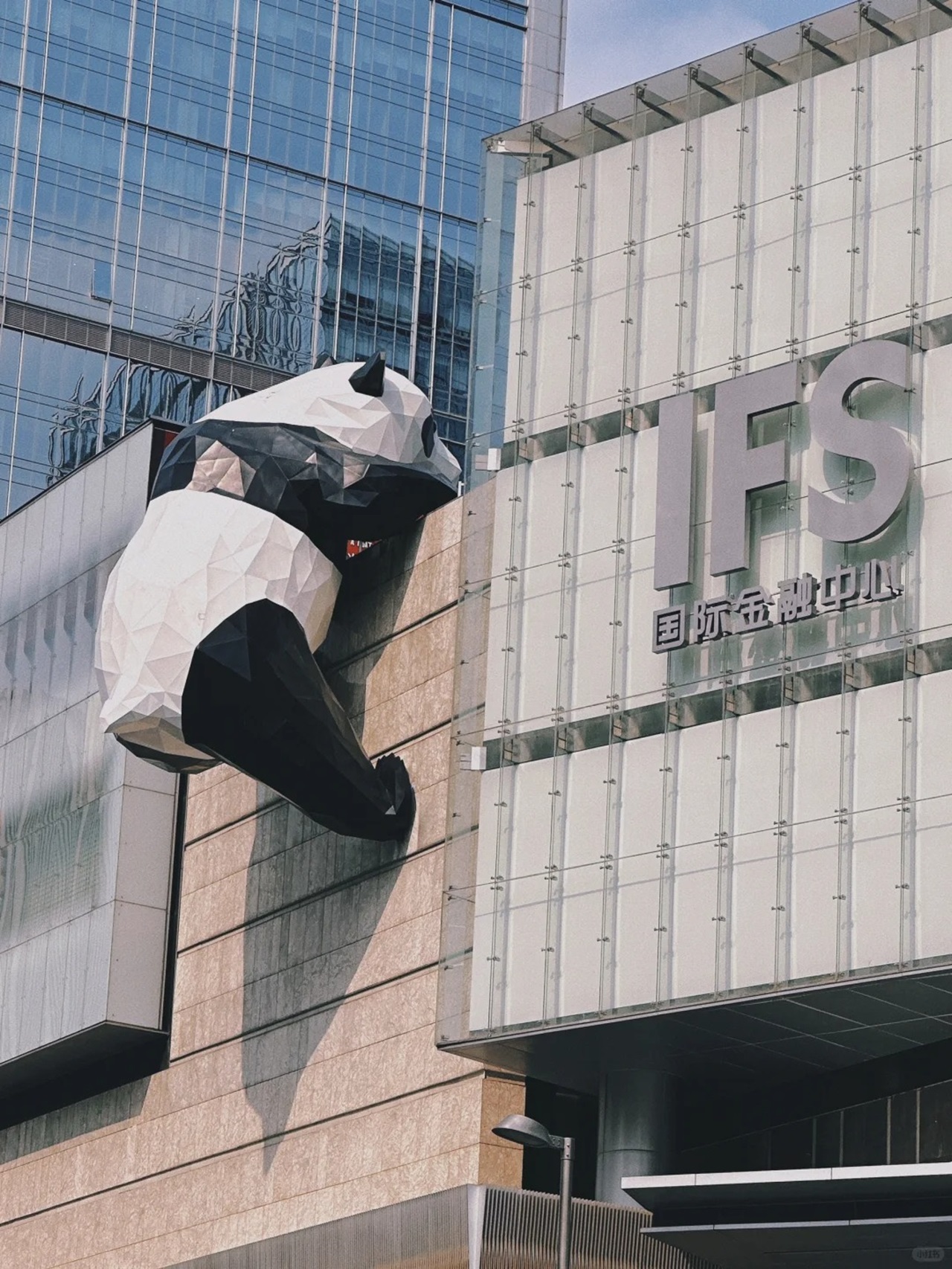 成都IFS国际金融中心是成都市中心的地标性建筑物之一,是目前成都最现代化、最繁华、最高端的商业综合体,在这里你可以看见爬楼的熊猫