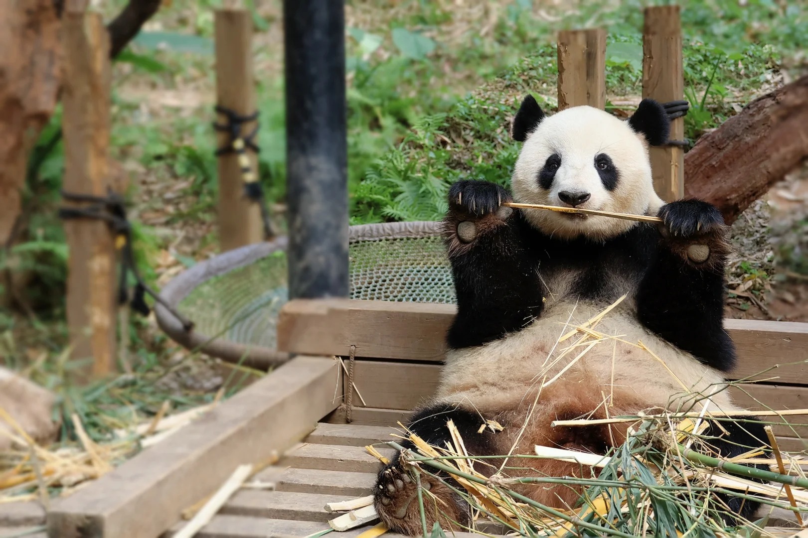 大熊猫主要以竹子为食,每天会花大量时间进食和休息。它们喜欢爬树,特别是在年轻时更是活泼好动,大熊猫成为了全球最受欢迎的动物之一