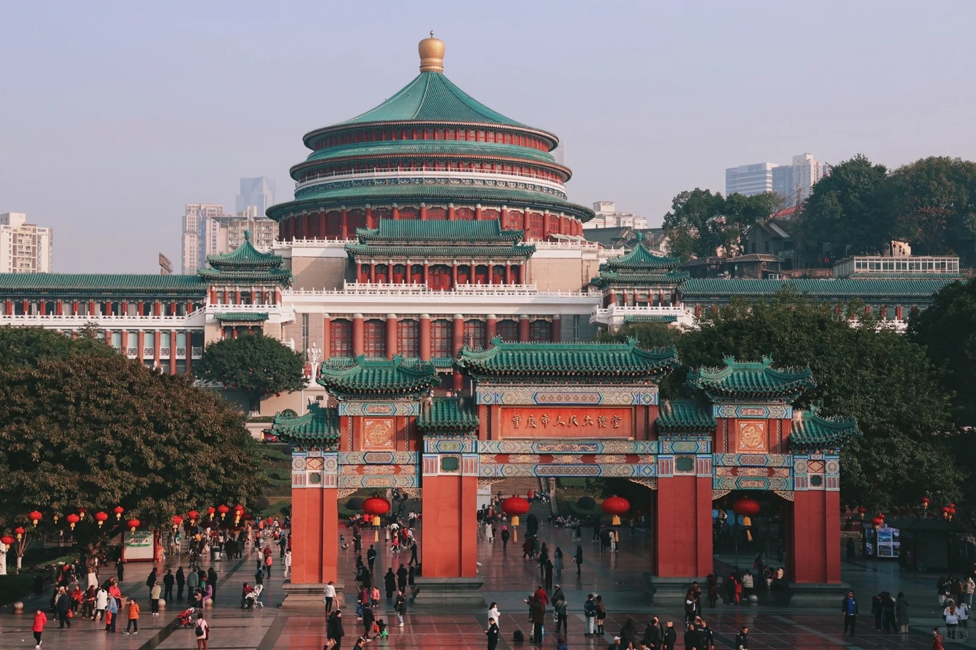 人民大礼堂是一座精美的仿古民族建筑群,是重庆的标志性建筑