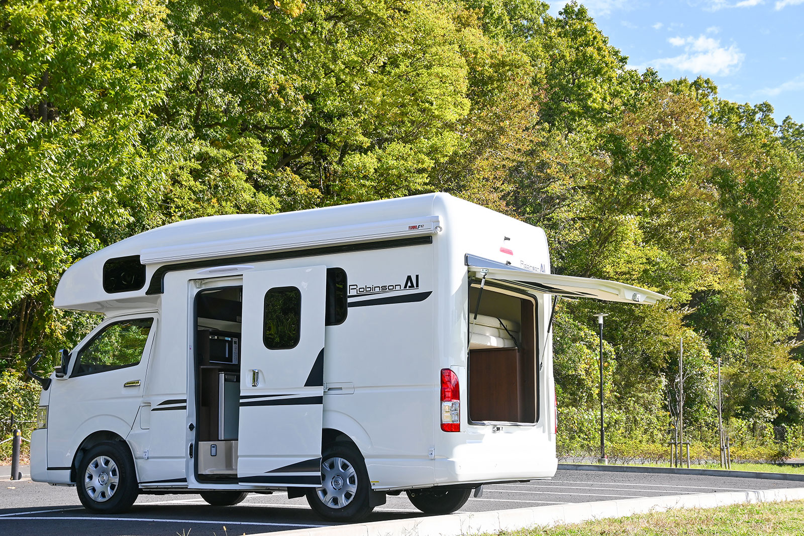 它配有专用的睡眠空间、面对面的餐桌和厨房,因此您只需一辆露营车即可旅行、休息和睡觉!