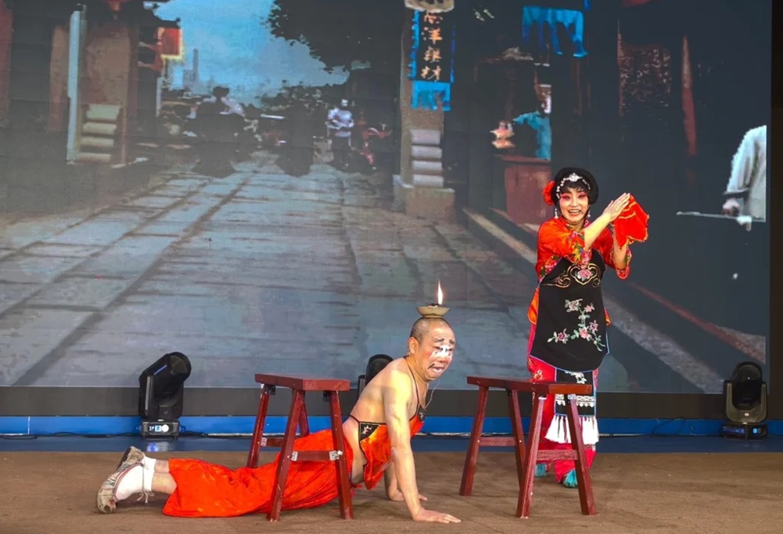 滚灯绝活,具有情节的幽默表演,它将非遗艺术融入节目,让观赏更加具有趣味性。