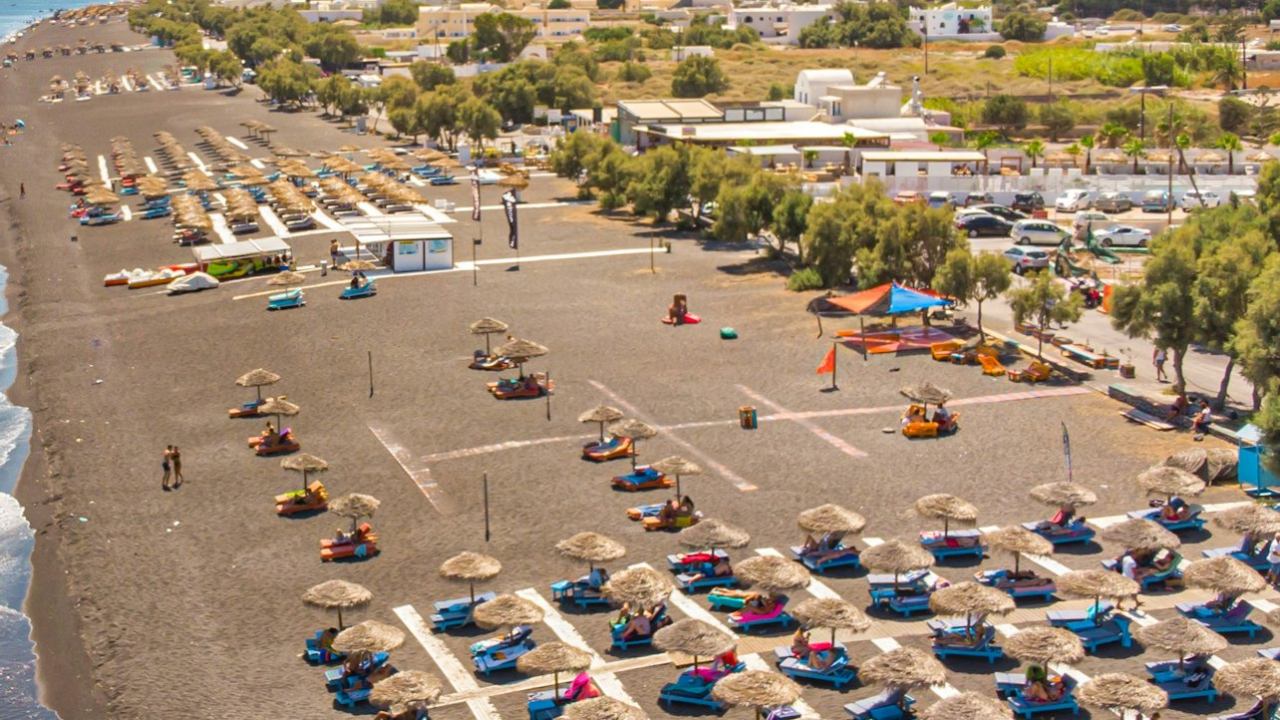 在佩里萨黑沙滩水晶般清澈的海水中畅游