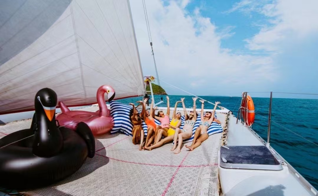 11点左右乘船抵达珊瑚岛,在蓝绿色的海水中游泳浮潜,自由体验约一小时的水上活动,在珊瑚岛享用海景午餐