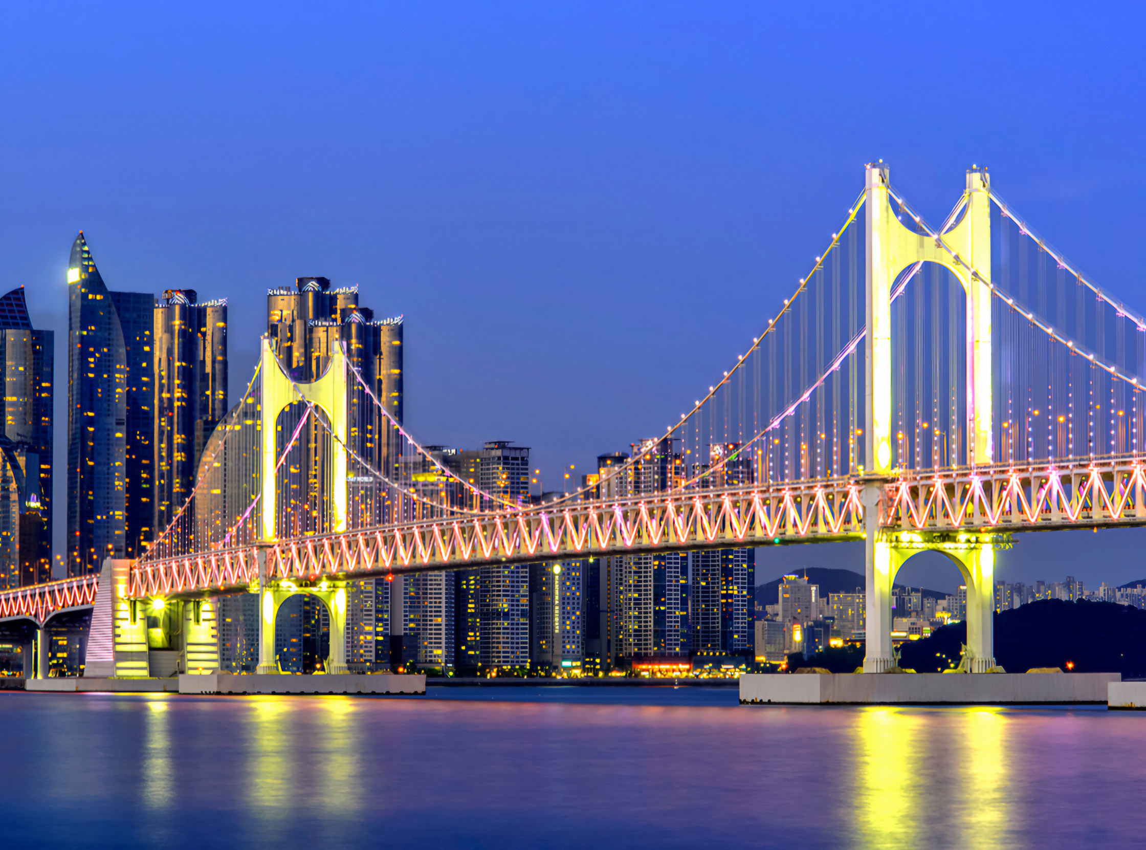 游艇将环绕釜山市的美丽地标航行,您可以观赏广安大桥、海云台和冬柏岛的风景。