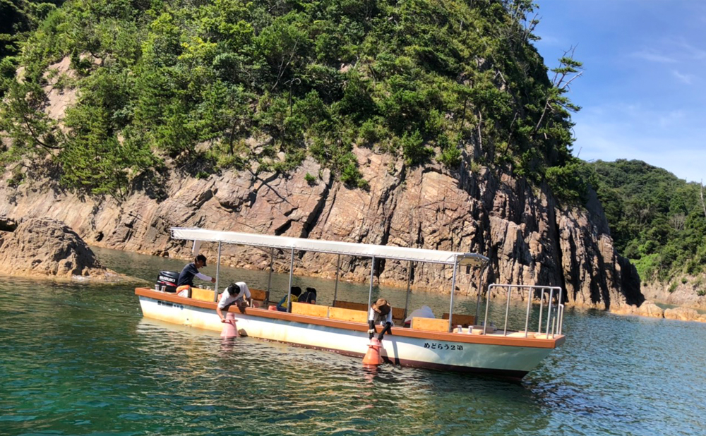 这是可以近距离体验浦富海岸的小型游览船,50分钟的观光路线。这是唯一可以穿越大型观光船无法通过的狭窄水道、进入洞穴、洞窟、浅水湾、欣赏70米高悬崖下的风景的套餐。您还可以使用箱式眼镜欣赏浦富海岸清澈的海水。何不尝试一次特别的体验,欣赏日本首屈一指的里亚式海岸线——浦富海岸的壮丽景色以及在陆地上永远看不到的风景?