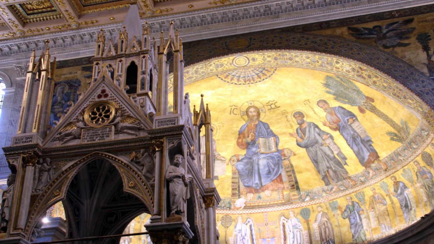 复杂的马赛克和神圣的艺术装饰着罗马历史悠久的大教堂,这是信仰的证明