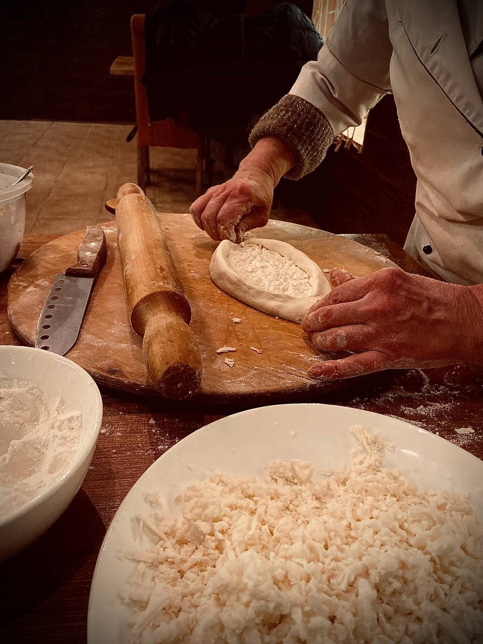 本次体验将带您参加大师班,学习如何制作著名的格鲁吉亚风味金卡利 (Khinkali) 和伊梅列季亚风味哈查普里 (Khachapuri)。活动将在我们温馨舒适的烹饪工作室举行。他们将教您如何寻找食材,介绍热门食谱,并探索格鲁吉亚美食的秘密,让您轻松在家烹饪。我们将烹饪的第一道菜是金卡利 (khinkali),它是格鲁吉亚美食的骄傲。面团:在烹饪课上,您将学习如何正确地翻转金卡利,以免它们在烹饪过程中散开。装盘:您将学习如何用同样的疗愈高汤来填充金卡利,这道菜的汤汁或许是主要食材。第二道菜中,我们将以伊梅列季亚风味烹制哈查普里。